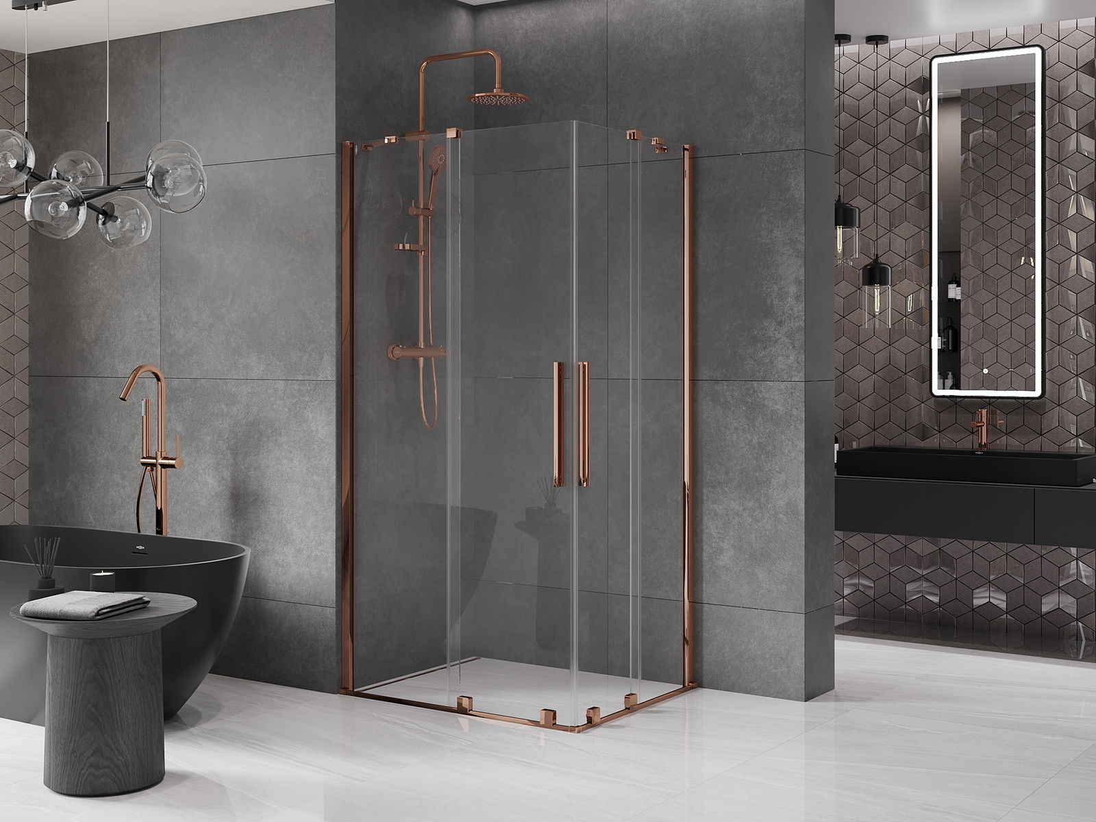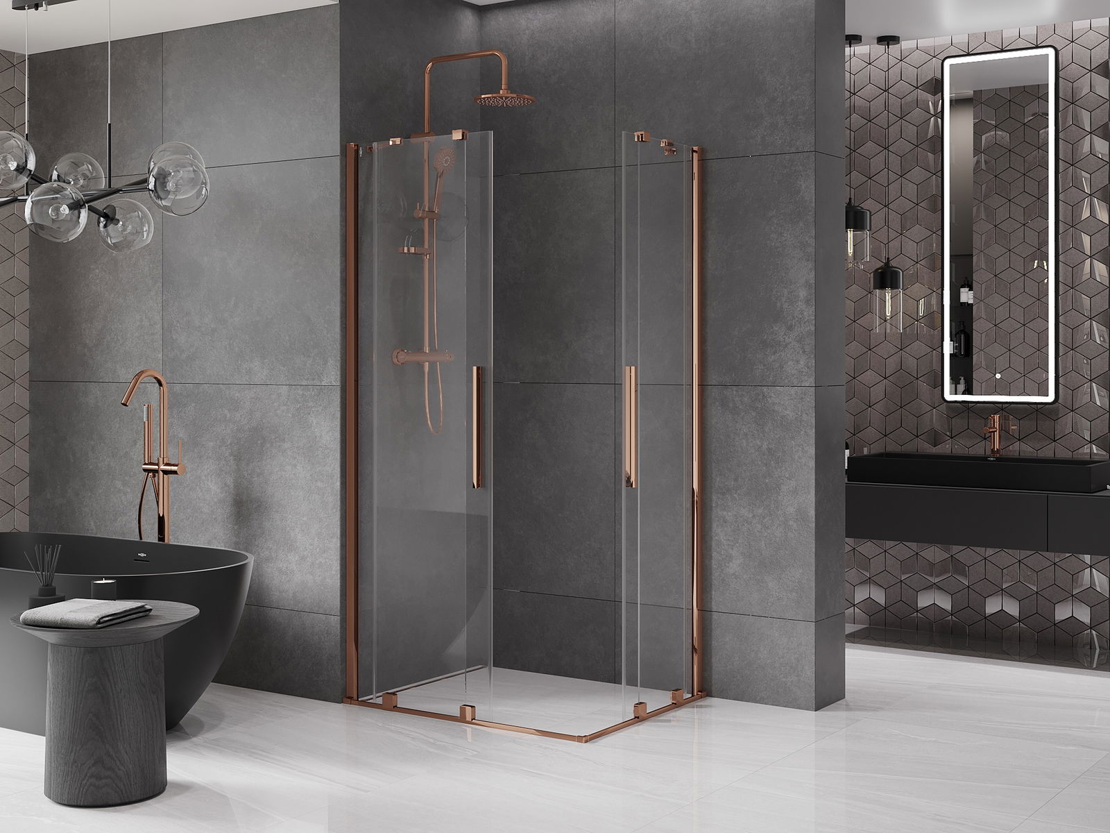 Mexen Velar Duo sprchová kabína posuvná 100 x 90 cm, transparentná, ružové zlato - 871-100-090-02-60