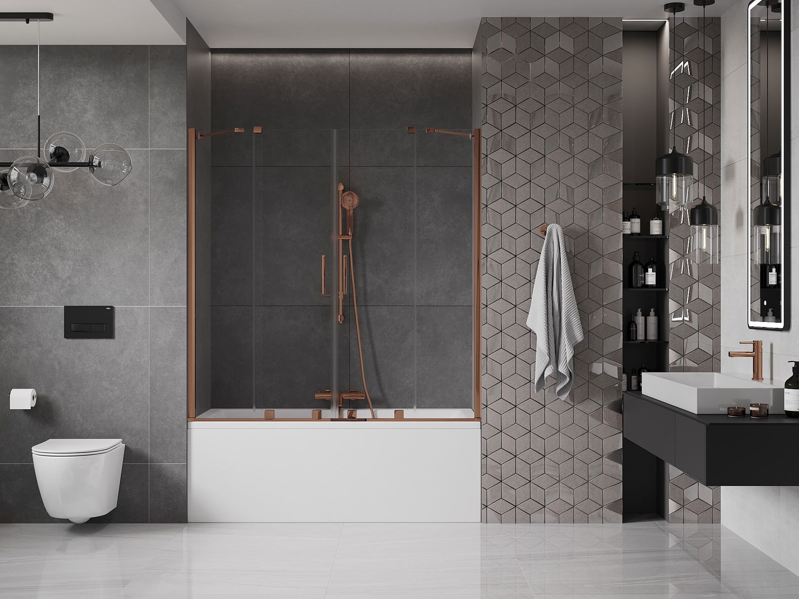 Mexen Velar Duo vaňová zástena 2-krídlová posuvná 150 x 150 cm, transparentná, ružové zlato - 896-150-000-02-60