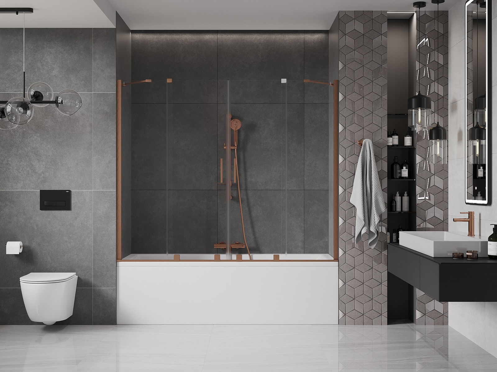 Mexen Velar Duo vaňová zástena 2-krídlová posuvná 200 x 150 cm, transparentná, brúsená meď - 896-200-000-02-65