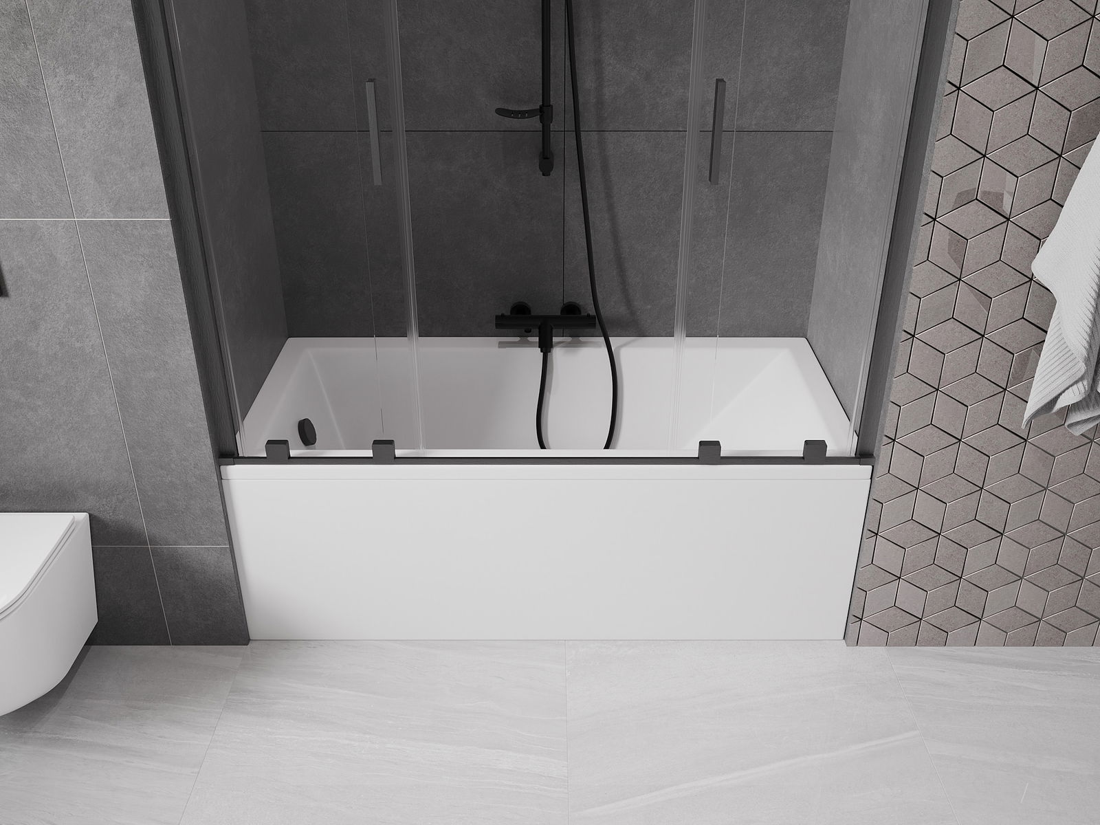 Použitím univerzálneho upevňovacieho systému je možné obrazovku namontovať napravo alebo vľavo, v závislosti od vašich potrieb. Týmto spôsobom môžete ľahko navrhnúť sprchu prispôsobenú priestoru v kúpeľni.