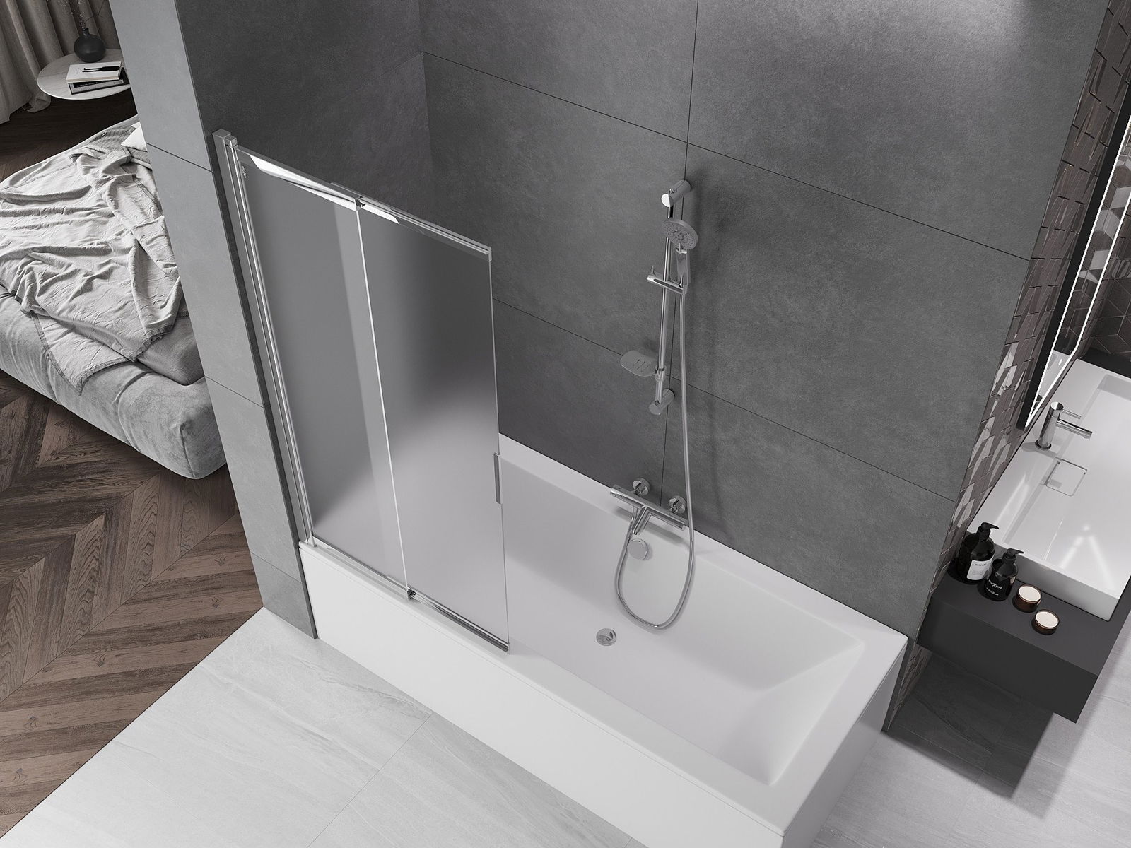 Použitím univerzálneho upevňovacieho systému je možné obrazovku namontovať napravo alebo vľavo, v závislosti od vašich potrieb. Týmto spôsobom môžete ľahko navrhnúť sprchu prispôsobenú priestoru v kúpeľni.