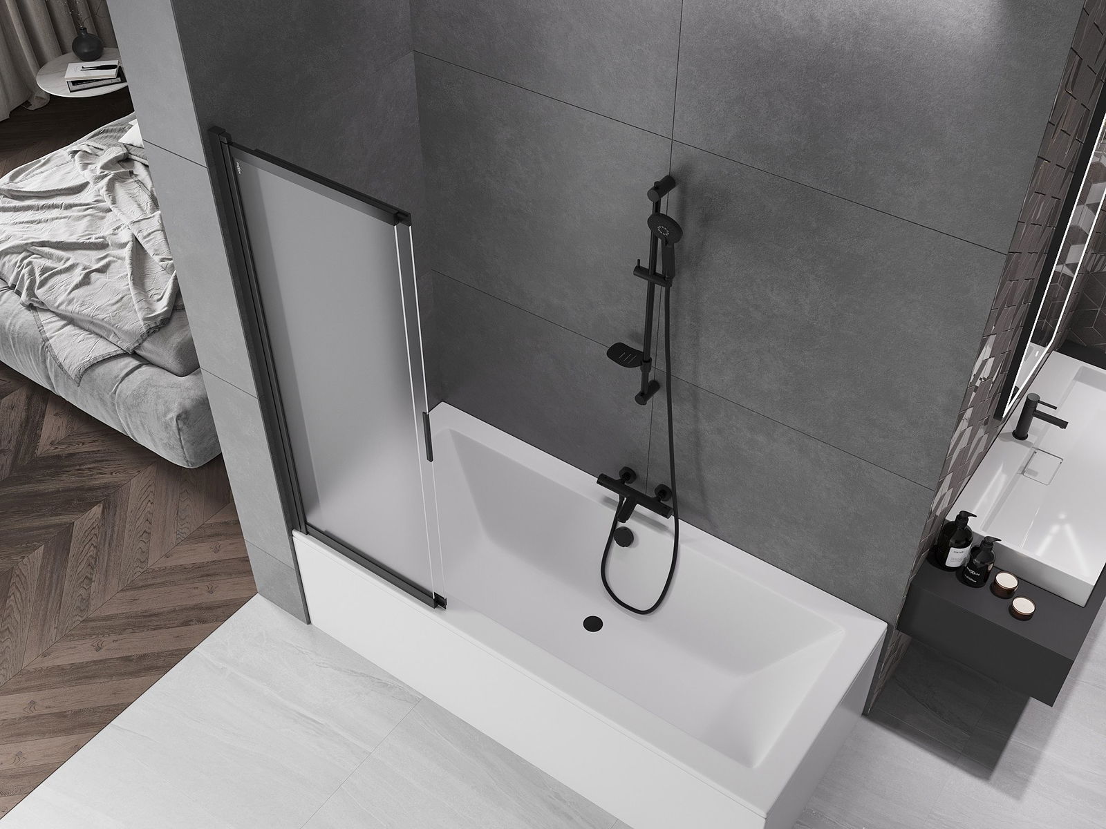 Účinná ochrana pred rozliatím vody počas kúpania. Obrazovka obsahuje tesnenia, ktoré sa dokonale prispôsobia pohárovi skla a okraja vane. Funkčné riešenie zabezpečujúce bezpečnosť a ľahkú údržbu.