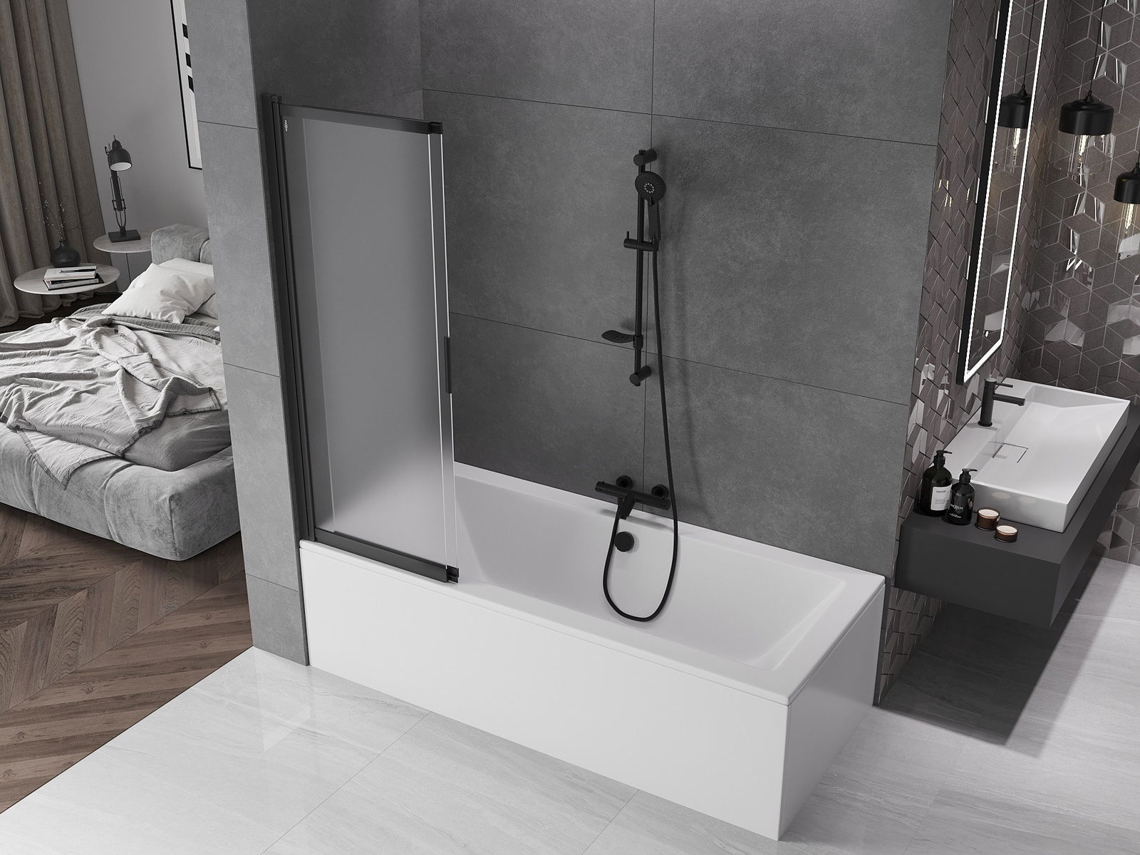 Použitím univerzálneho upevňovacieho systému je možné obrazovku namontovať napravo alebo vľavo, v závislosti od vašich potrieb. Týmto spôsobom môžete ľahko navrhnúť sprchu prispôsobenú priestoru v kúpeľni.