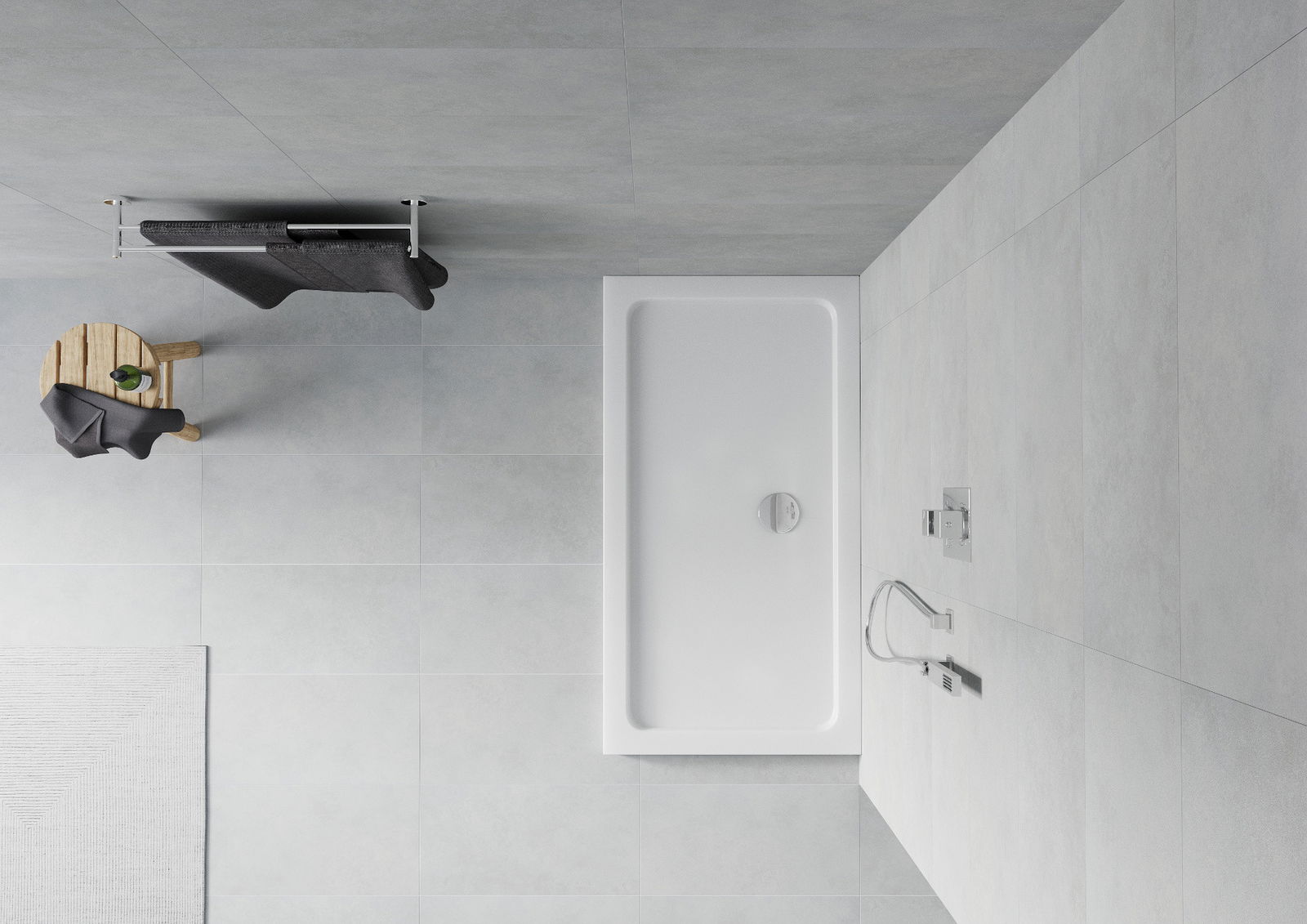 Sprchový podnos bol navrhnutý tak, aby voda mohla voľne prúdiť smerom k odtoku. Poskytuje rýchle a efektívne odtok vody z povrchu pádlovacieho bazéna, ktorý bráni tvorbe kaluže a zaplavuje kúpeľňu.