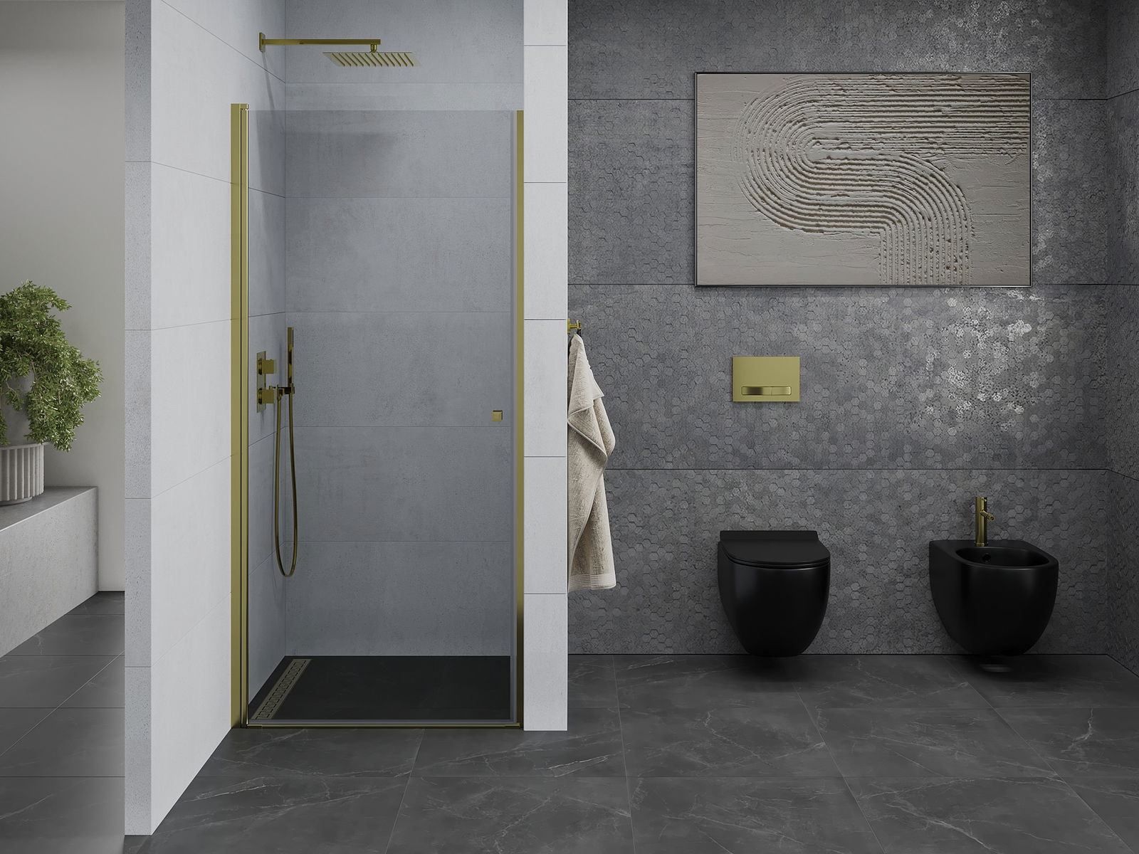 Praktická a pohodlná rukoväť bola vyrobená z odolného a odolného kovu. Módny tvar v kombinácii s povrchom prispôsobeným farbe profilov dodáva celku moderný a štýlový vzhľad, zdôrazňujúc estetiku každej kúpeľne.