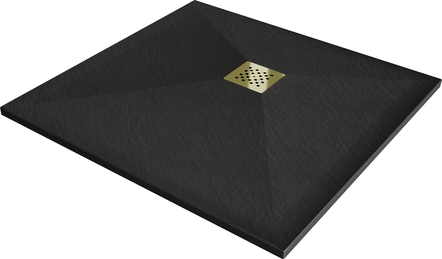 Mexen Stone+ kompozitná štvorcová sprchová vanička 70 x 70 cm, čierna, zlatý kryt - 44707070-G