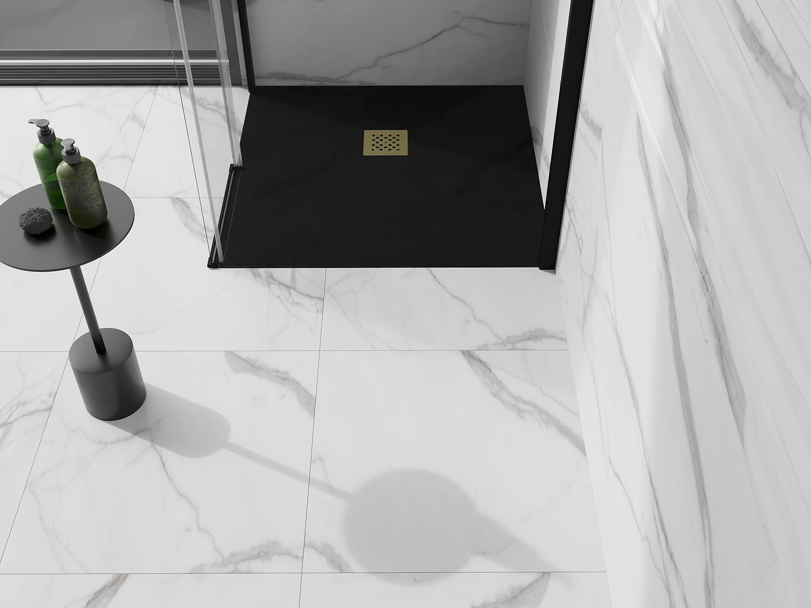 Mexen Stone+ štvrcový kompozitný sprchový kút 80 x 80 cm, čierny, zlatý kryt - 44708080-G