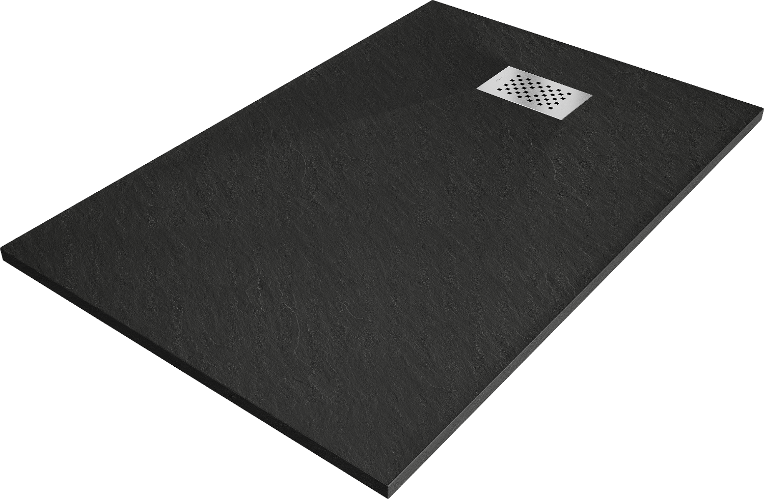Mexen Hugo obdĺžniková sprchová vanička SMC 110 x 70 cm, čierna, krytka inox - 42707011-X