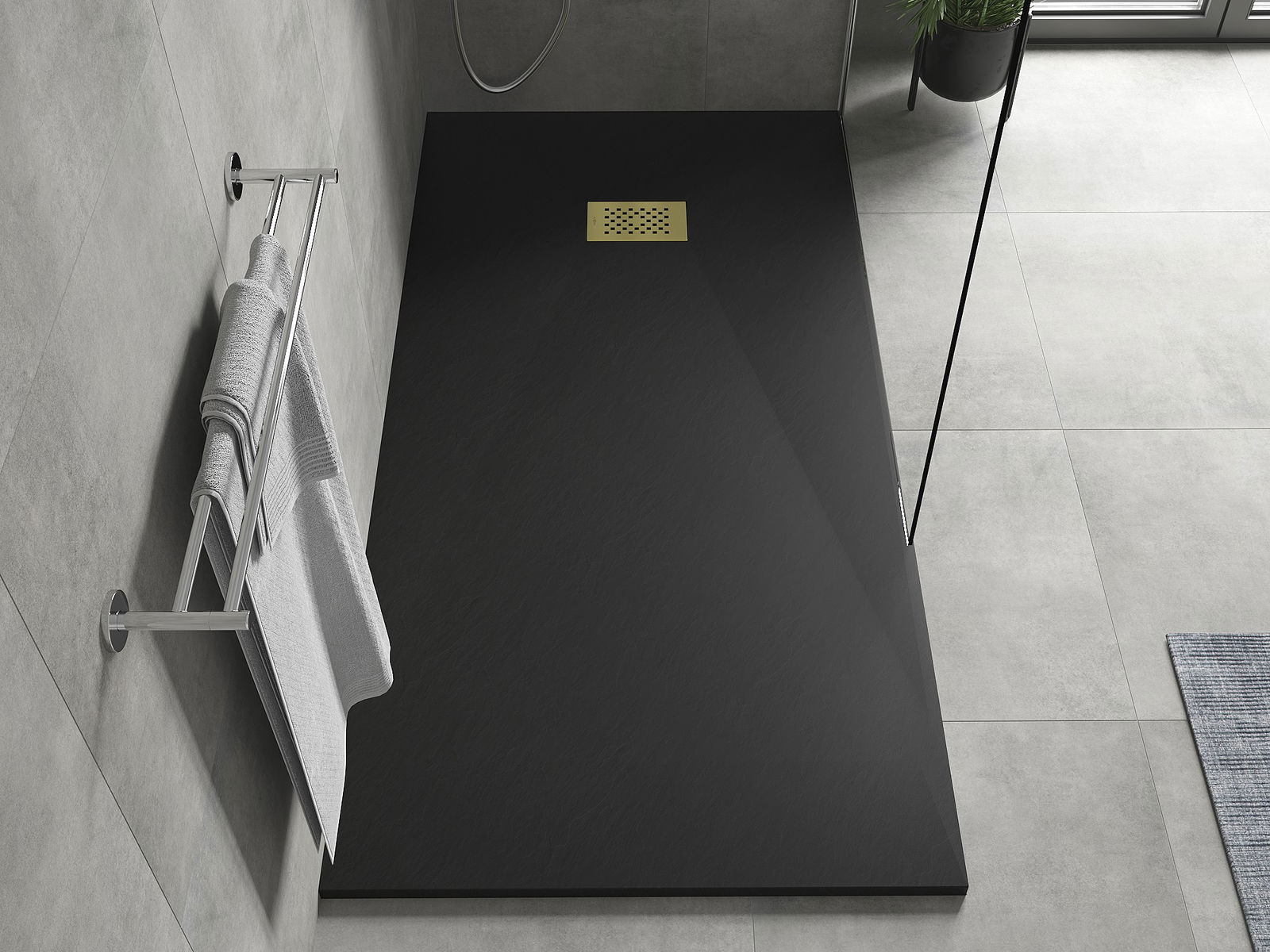 Mexen Hugo obdĺžniková vanička SMC 170 x 90 cm, čierna, kryt zlatý - 42709017-G