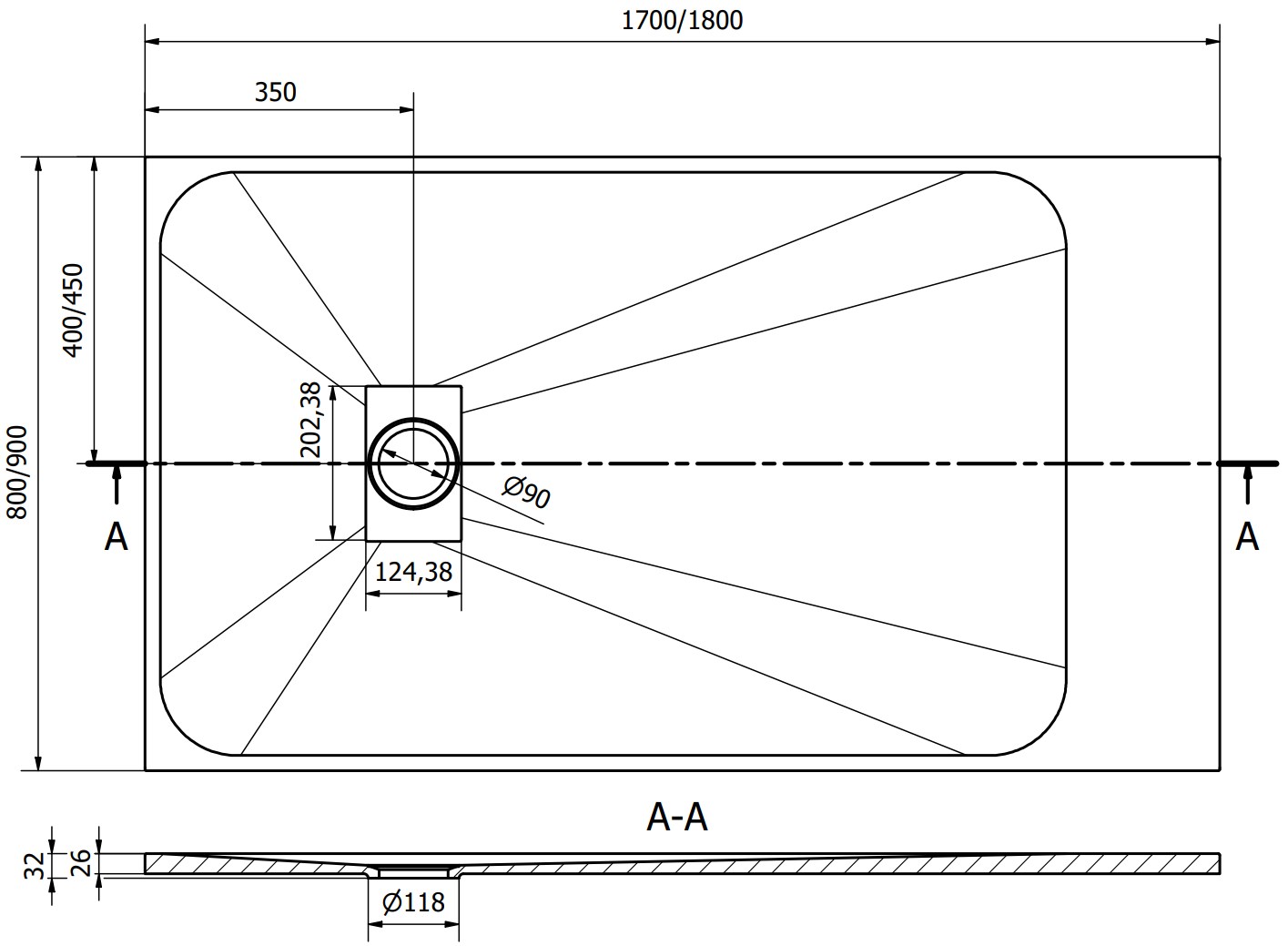 Priemer odtoku: 90 mm