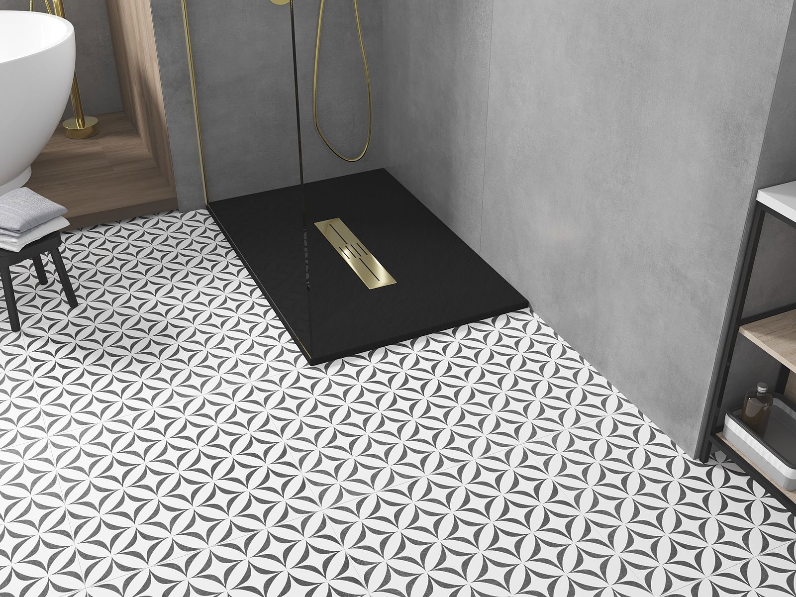 Sprchová vanička má nízky prah, čo uľahčuje vstupovanie a vystupovanie zo sprchy. Dodáva miestnosti výnimočný a nadčasový vzhľad, čím robí kúpeľňu komfortným a estetickým miestom na každodenný relax.