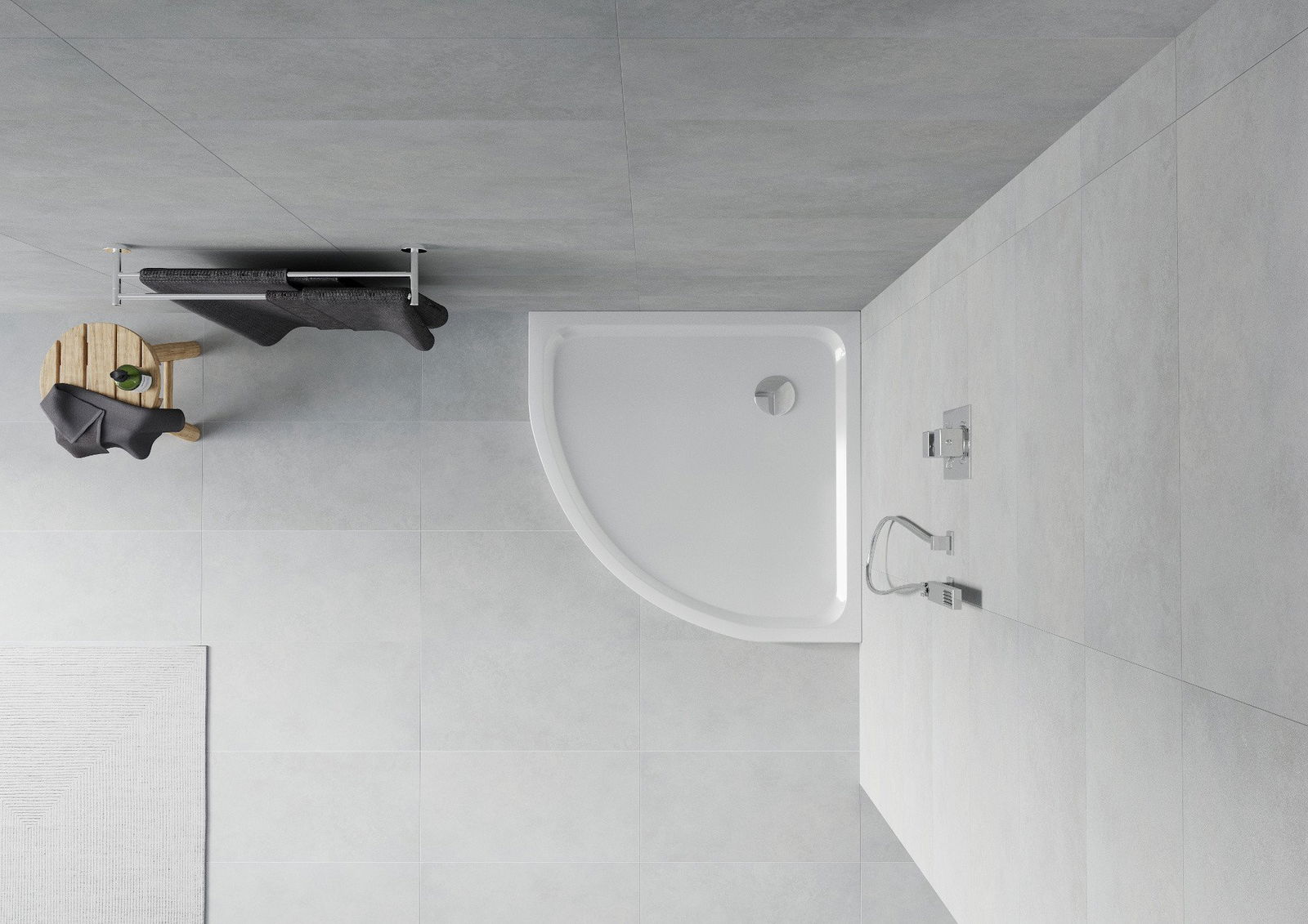 Polkruhová vanička slim s rozmermi 90 x 90 cm je ideálne riešenie pre modernú kúpeľňu. Vyrobená z vysoko kvalitného sanitárneho akrylu, zabezpečuje trvanlivosť a komfort používania. Jej biela farba a lesk zaisťujú, že sa hodí do rôznych aranžmánov. Vďaka konštrukcii s hrúbkou 5 cm je ľahká na montáž a v balení sa nachádza sifón čistený zhora s priemerom odtoku 90 mm. Je to funkčná voľba, ktorá spája eleganciu s praktickosťou.
