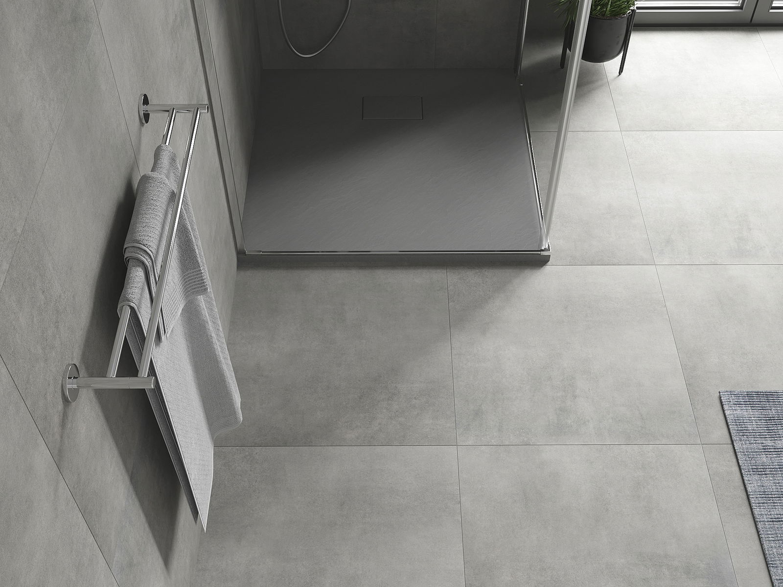 Sprchovací podnos má nízku prahovú hodnotu, čo uľahčuje vstup a opustenie sprchy. Dodáva do miestnosti jedinečný a nadčasový povrch, vďaka čomu je kúpeľňa pohodlným a estetickým miestom každodennej relaxácie.
