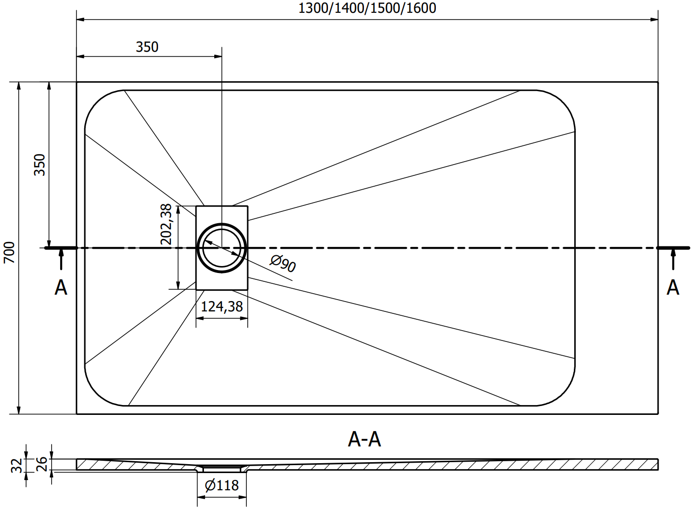 Sprchový kút bol navrhnutý tak, aby voda mohla voľne odtekať smerom k odtoku. Zabezpečuje rýchle a efektívne odvádzanie vody z povrchu sprchového kúta, čím zabraňuje tvorbe kaluží a zaplavovaniu kúpeľne.