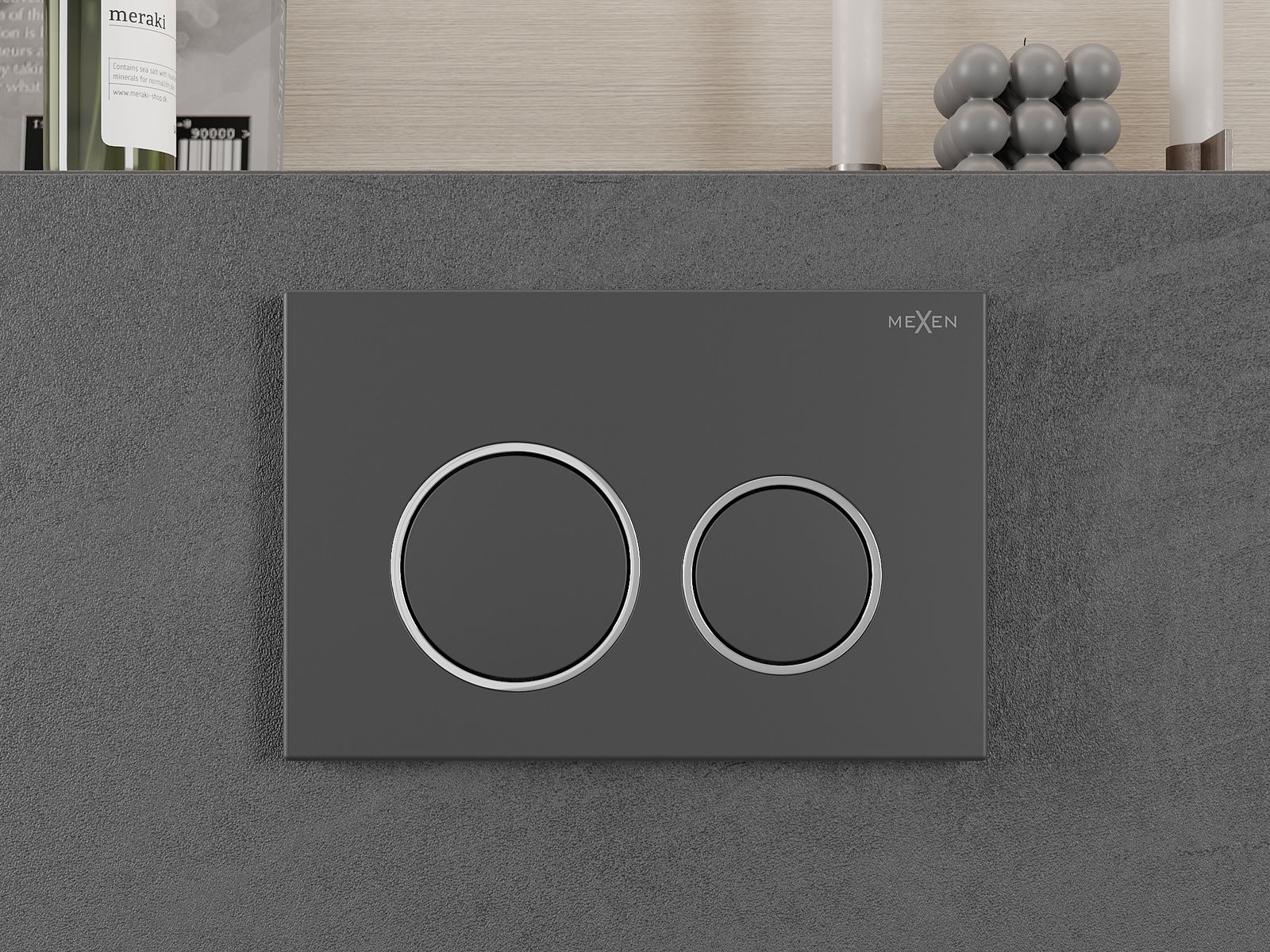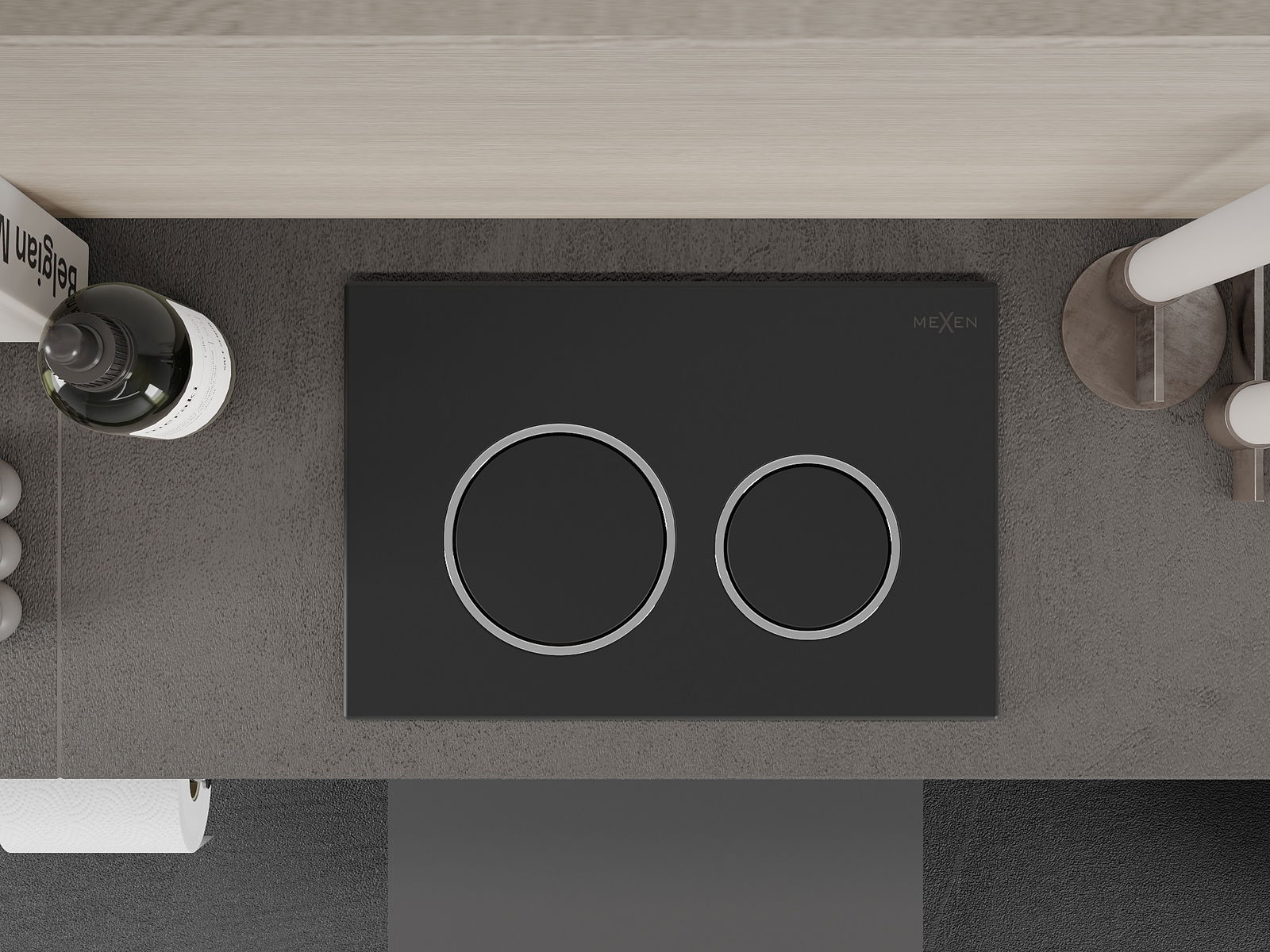 Vyplachovacie tlačidlo sa zmestí na snímky zo série Mexen Fenix XS, ktorá umožňuje nainštalovanie spredu aj z hornej časti rámu. Vďaka tomu je porovnávanie preferovanej montážnej metódy k vašim potrebám ešte jednoduchšie.