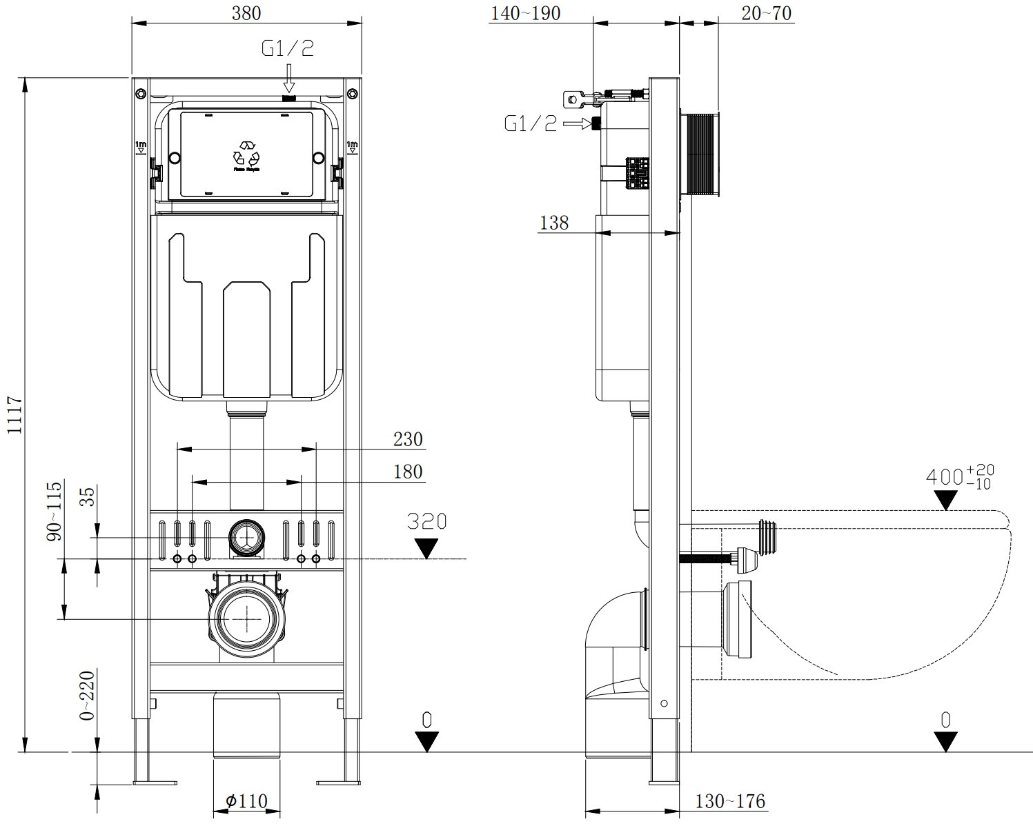 Schopnosť upraviť výšku rámu v rozsahu 0-22 cm umožňuje lepšiu zhodu s rôznymi technickými podmienkami v kúpeľni. Flexibilný rozsah nastavenia zaisťuje pohodlie montáže a získanie optimálnej výšky rámu.