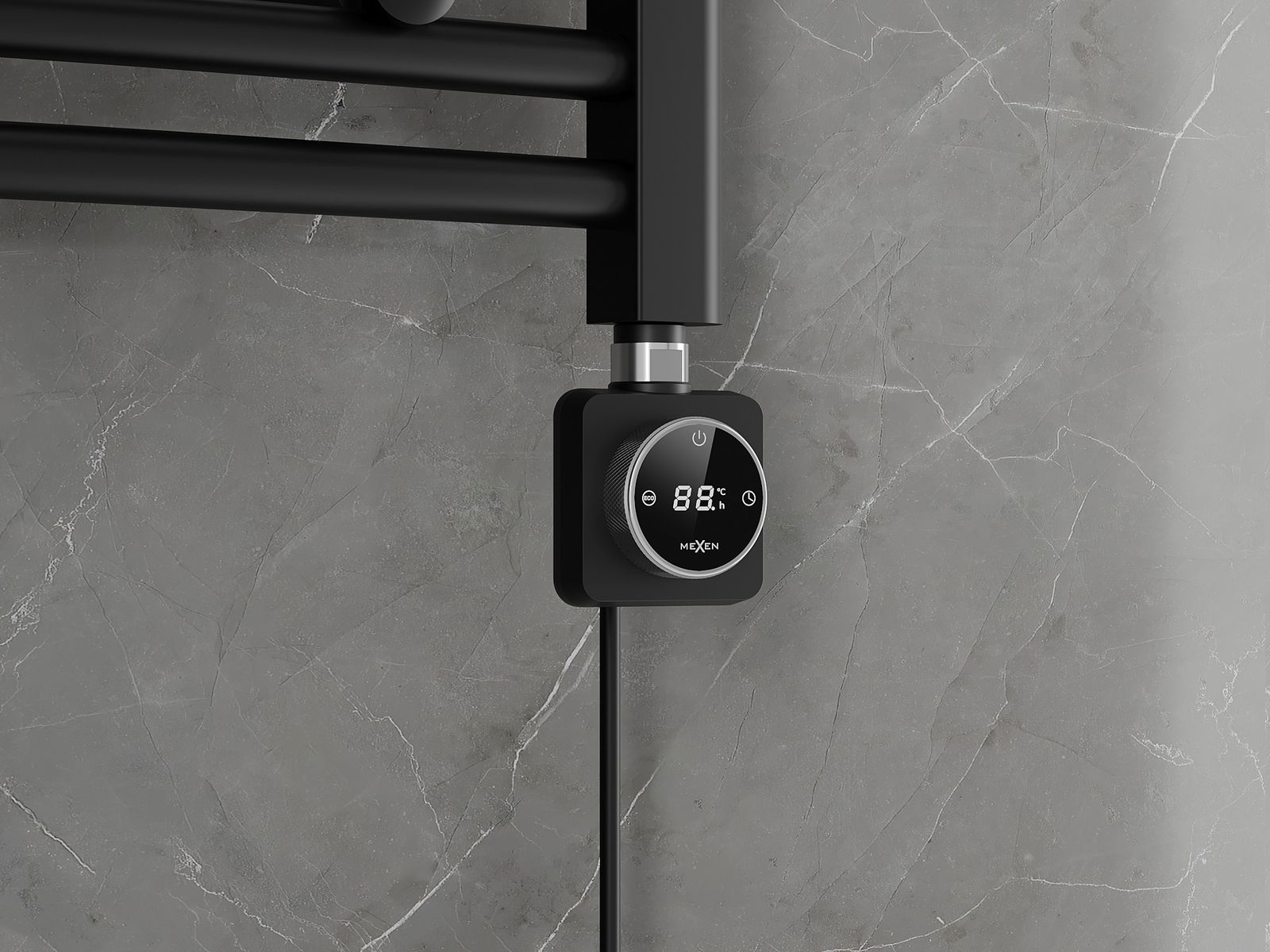 Mexen FA-FD14 je moderný elektrický ohrievač s výkonom 400 W, dostupný v elegantnej čiernej farbe. Celková dĺžka je 479 mm a dĺžka ohrievacieho prvku je 390 mm. Zariadenie pracuje na napätí 230V/50 Hz a má pripojovací kábel s dĺžkou 1,5 m. Závit ohrievača je G 1/2", a stupeň ochrany IP44 zaisťuje bezpečnosť používania. LED displej zobrazuje režim činnosti a ohrievač ponúka funkcie ako nastavenie presnej teploty, možnosť sušenia a režim šetrenia energiou.