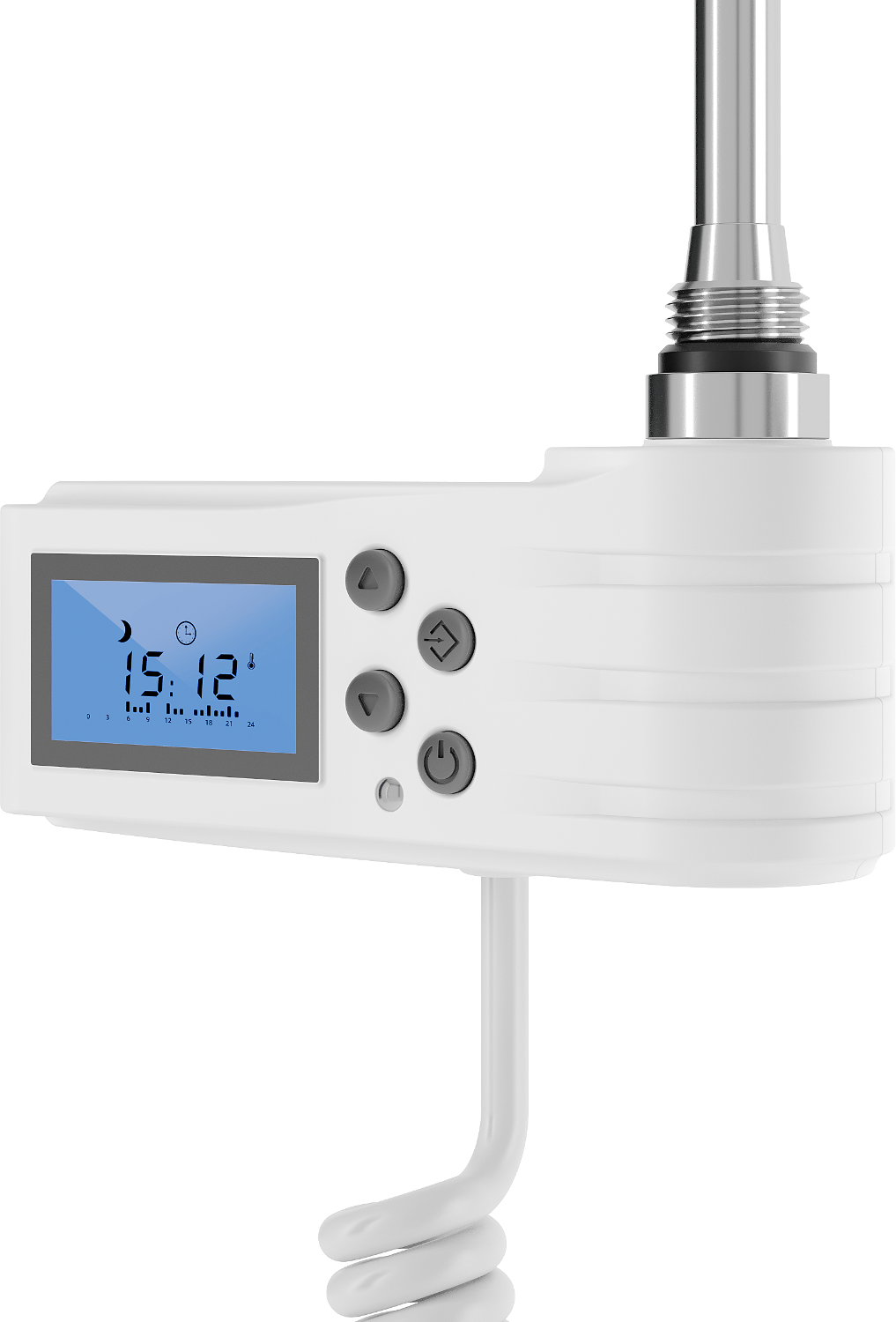 Mexen elektrické výhrevné teleso 450 W (biela) je účinné a moderné riešenie pre vašu kúpeľňu. Má celkovú dĺžku 490 mm a vykurovací prvok s dĺžkou 415 mm. Teleso pracuje na napätí 230V/50Hz a ponúka výkon 450 W. Biela farba sa dokonale hodí do každého interiéru. Vybavené LED displejom, detskou zámkou a funkciami ako Sensitive, Comfort, Smart, ECO a Anti-frost. Stupeň ochrany IP44 a dodatočná ochrana pred prevádzkou na 'sucho' zaručujú bezpečné a pohodlné používanie.