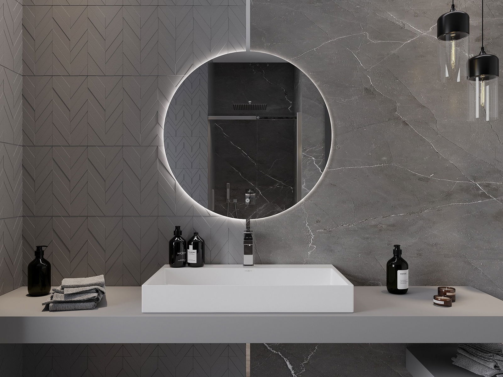 Mexen Erg kruhové podsvietené kúpeľňové zrkadlo, 80 cm, LED 6000K, antifog - 9823-080-080-611-00