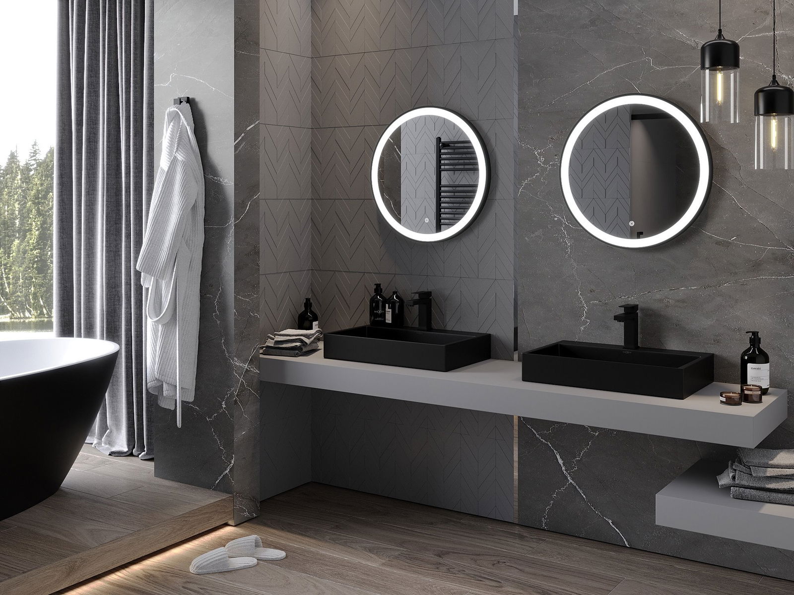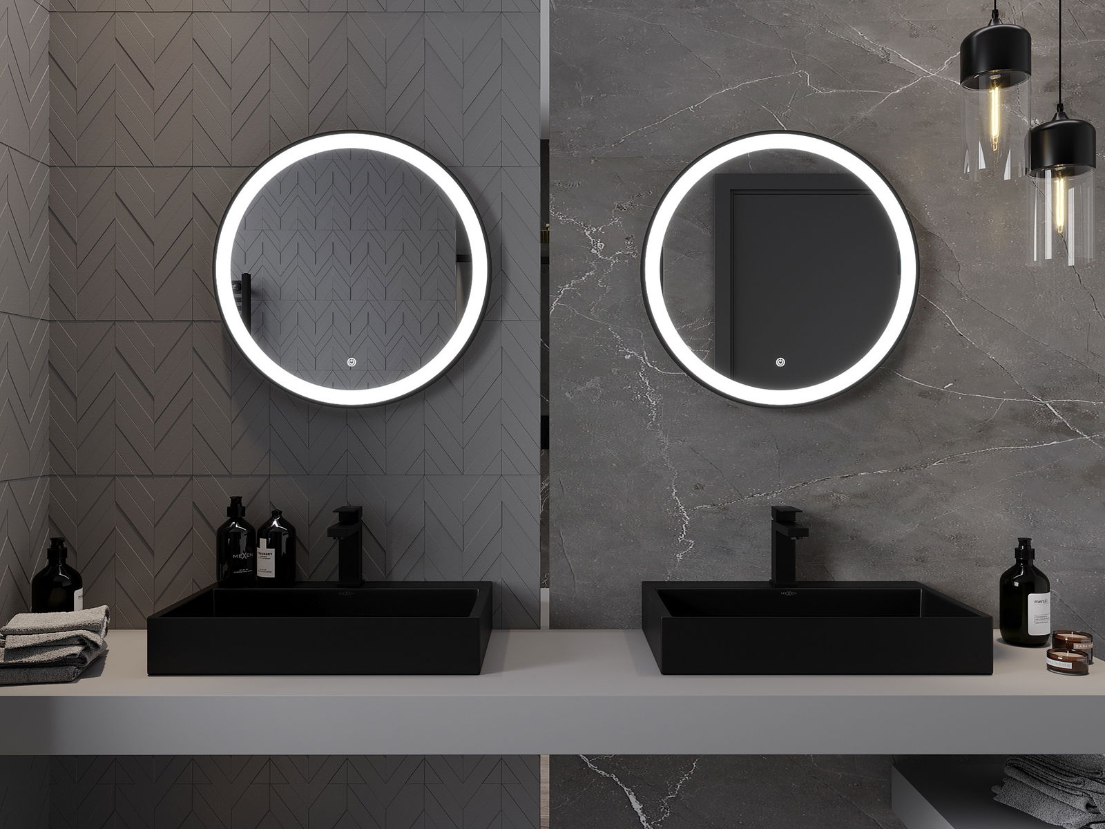Mexen Esso osvetlené kruhové kúpeľňové zrkadlo, 60 cm, LED 6000K, proti zahmlievaniu, čierny rám - 9825-060-060-611-70