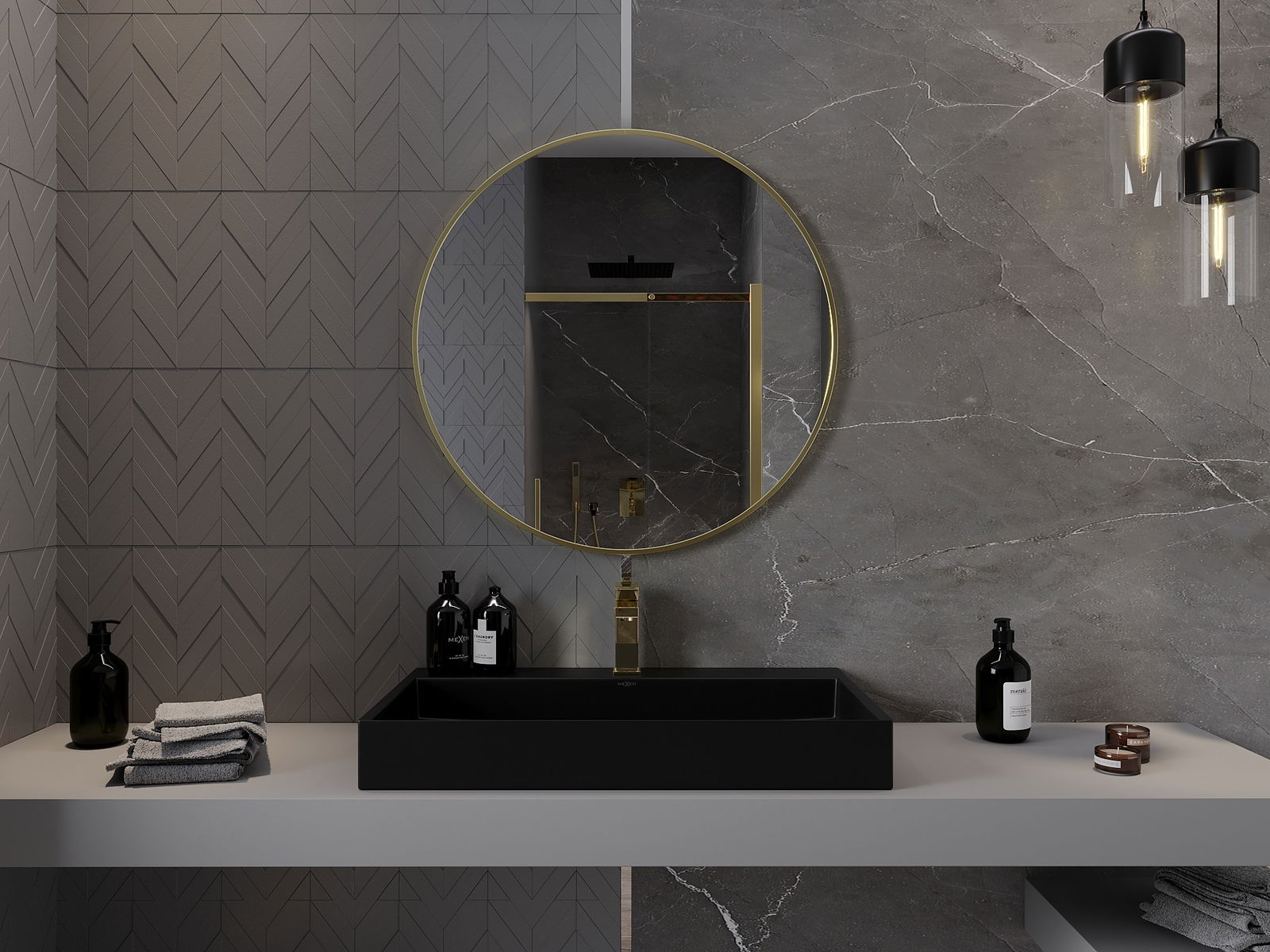 Mexen Loft kúpeľňové okrúhle zrkadlo 80 cm, zlatý rám - 9850-080-080-000-50