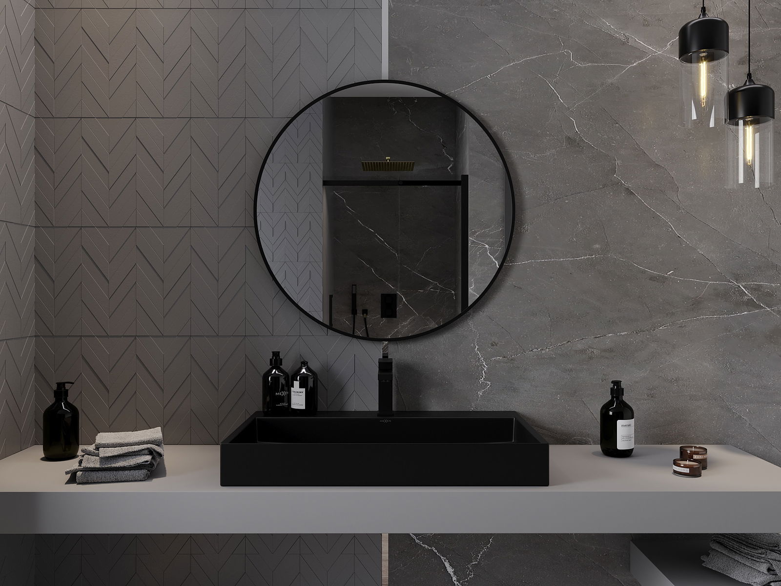 Mexen Loft okrúhle zrkadlo do kúpeľne 80 cm, čierny rám - 9850-080-080-000-70