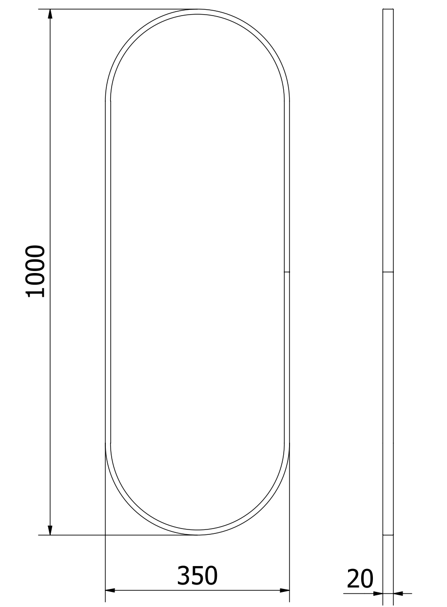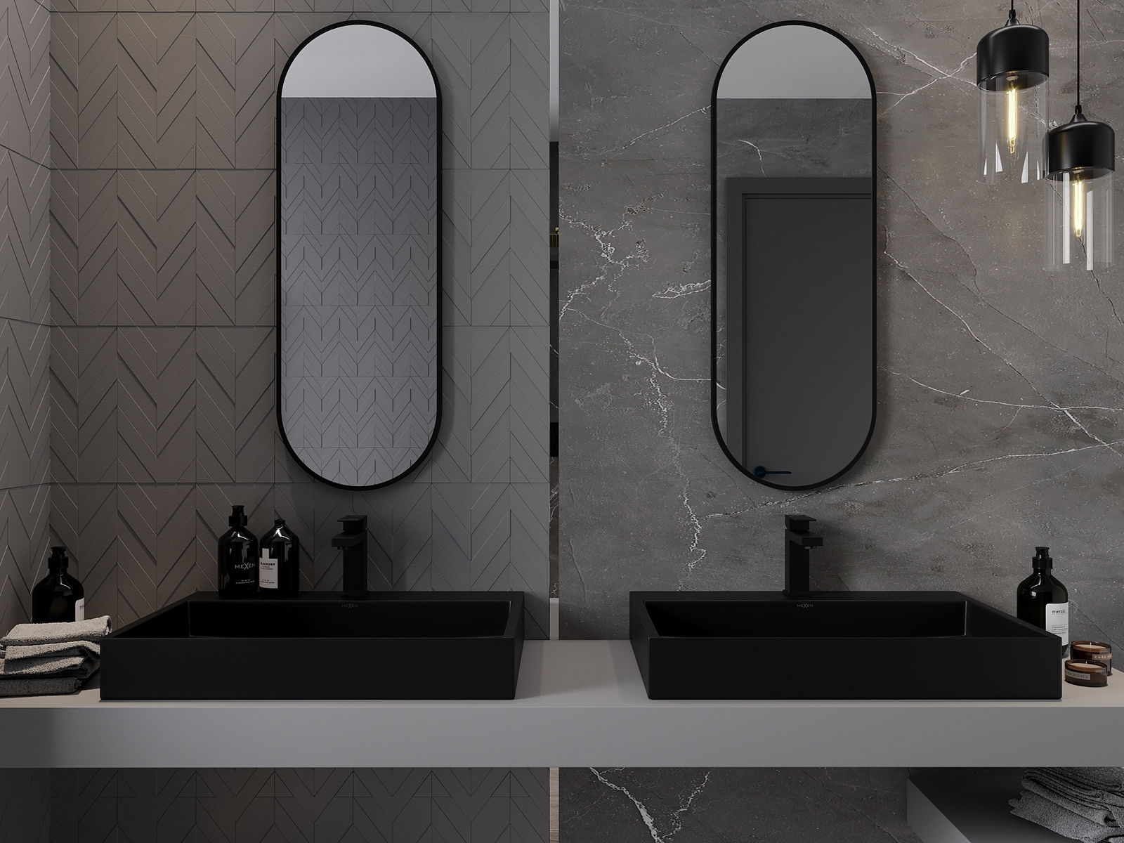 Mexen Loft oválne zrkadlo do kúpeľne 100 x 35 cm, čierny rám - 9851-100-035-000-70