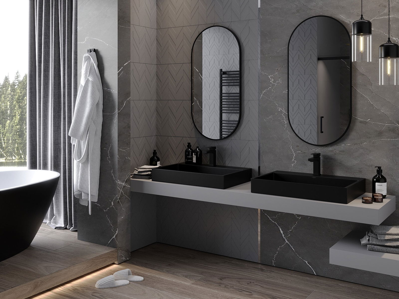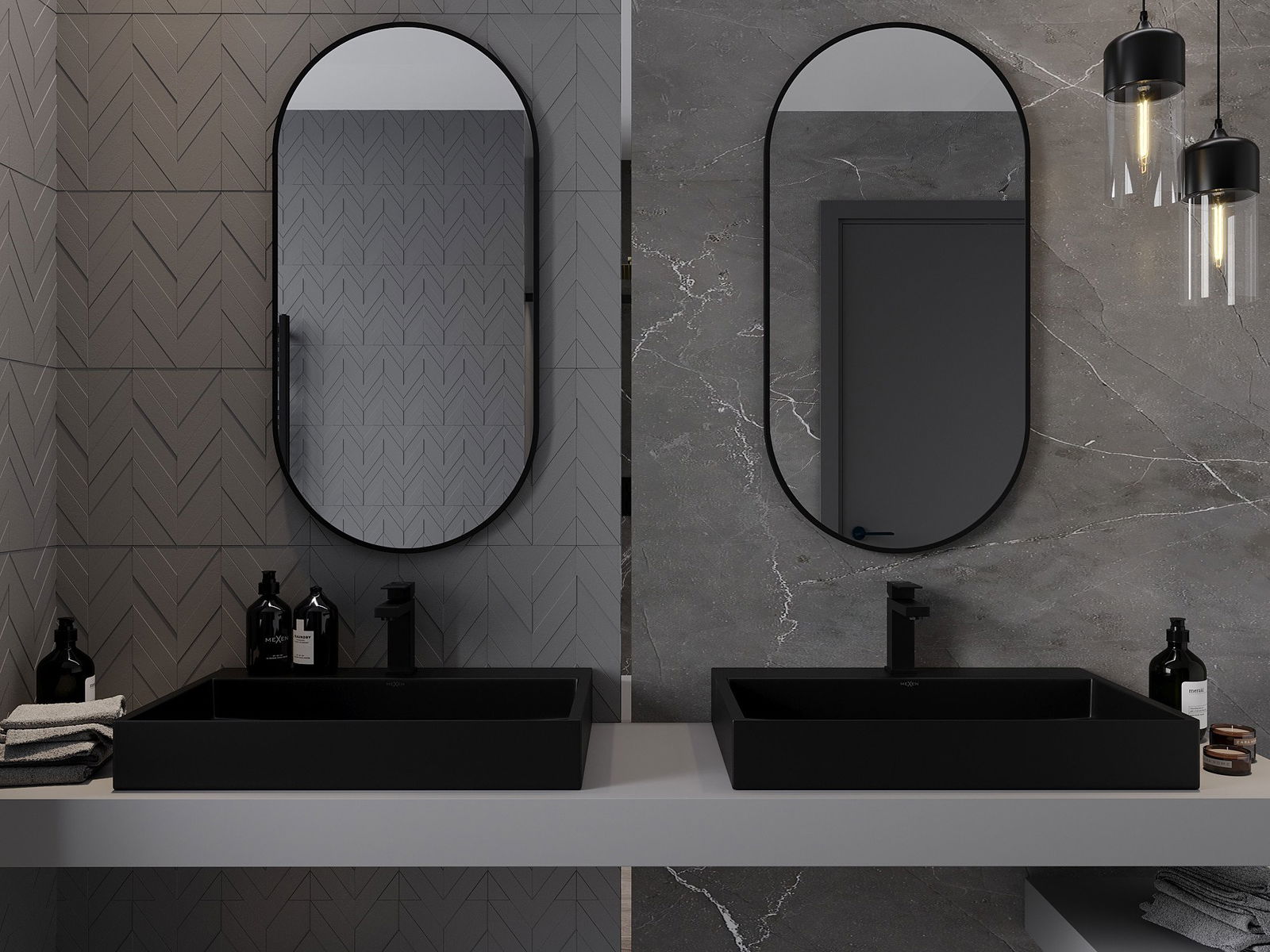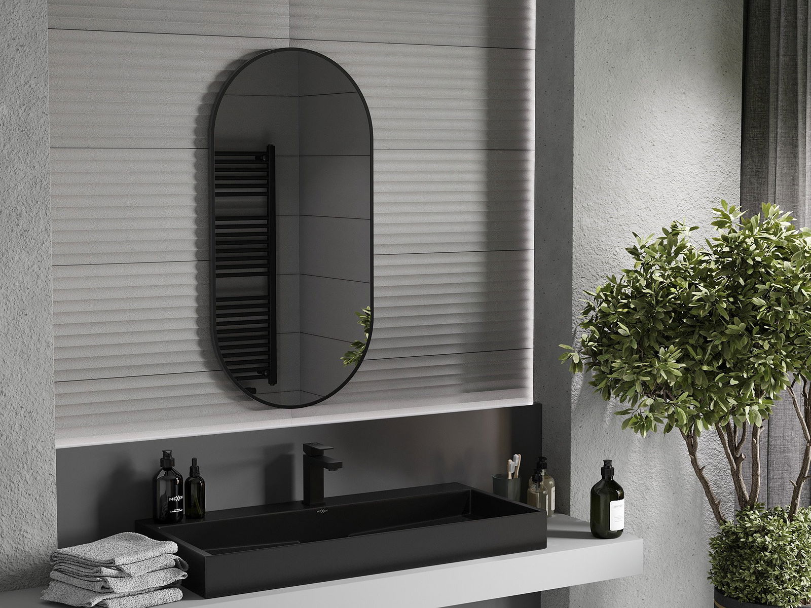 Mexen Loft zrkadlo kúpeľňové oválne 100 x 50 cm, čierny rám - 9851-100-050-000-70