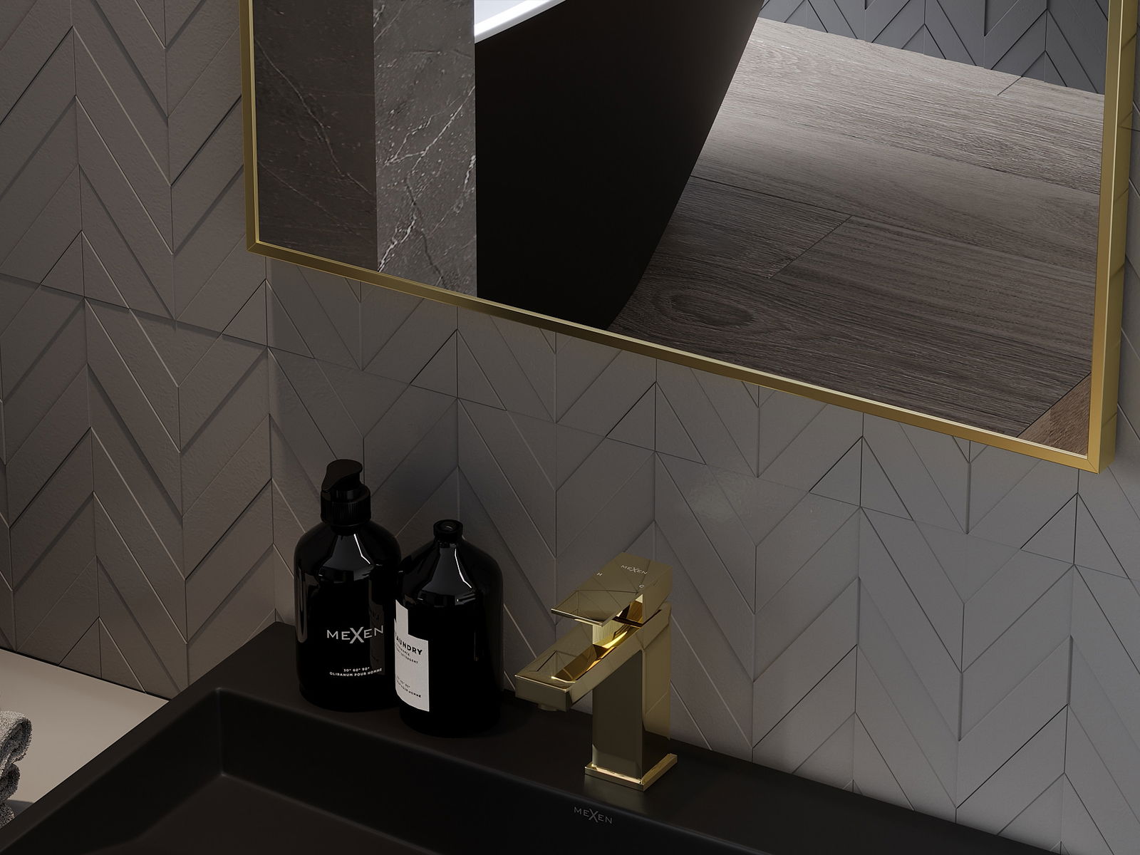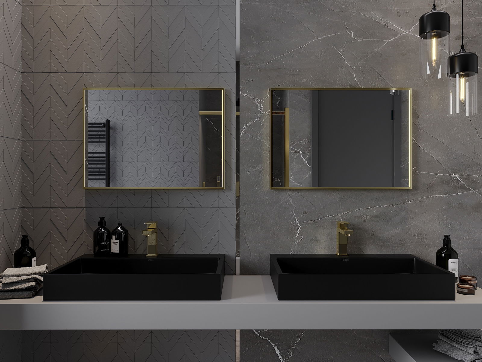 Mexen Loft obdĺžnikové kúpeľňové zrkadlo 70 x 50 cm, zlatý rám - 9852-070-050-000-50