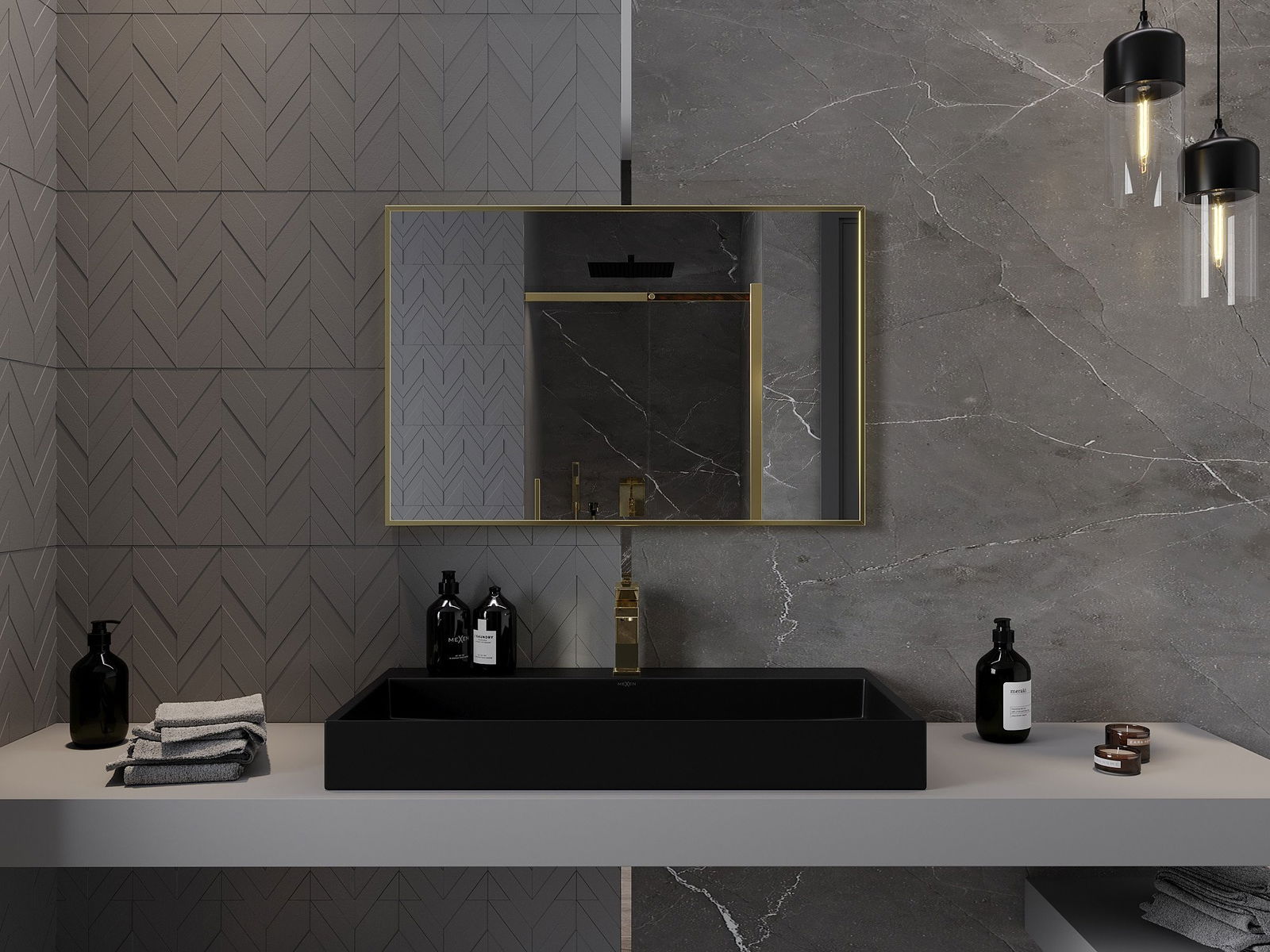 Mexen Loft obdĺžnikové kúpeľňové zrkadlo 90 x 60 cm, zlatý rám - 9852-090-060-000-50