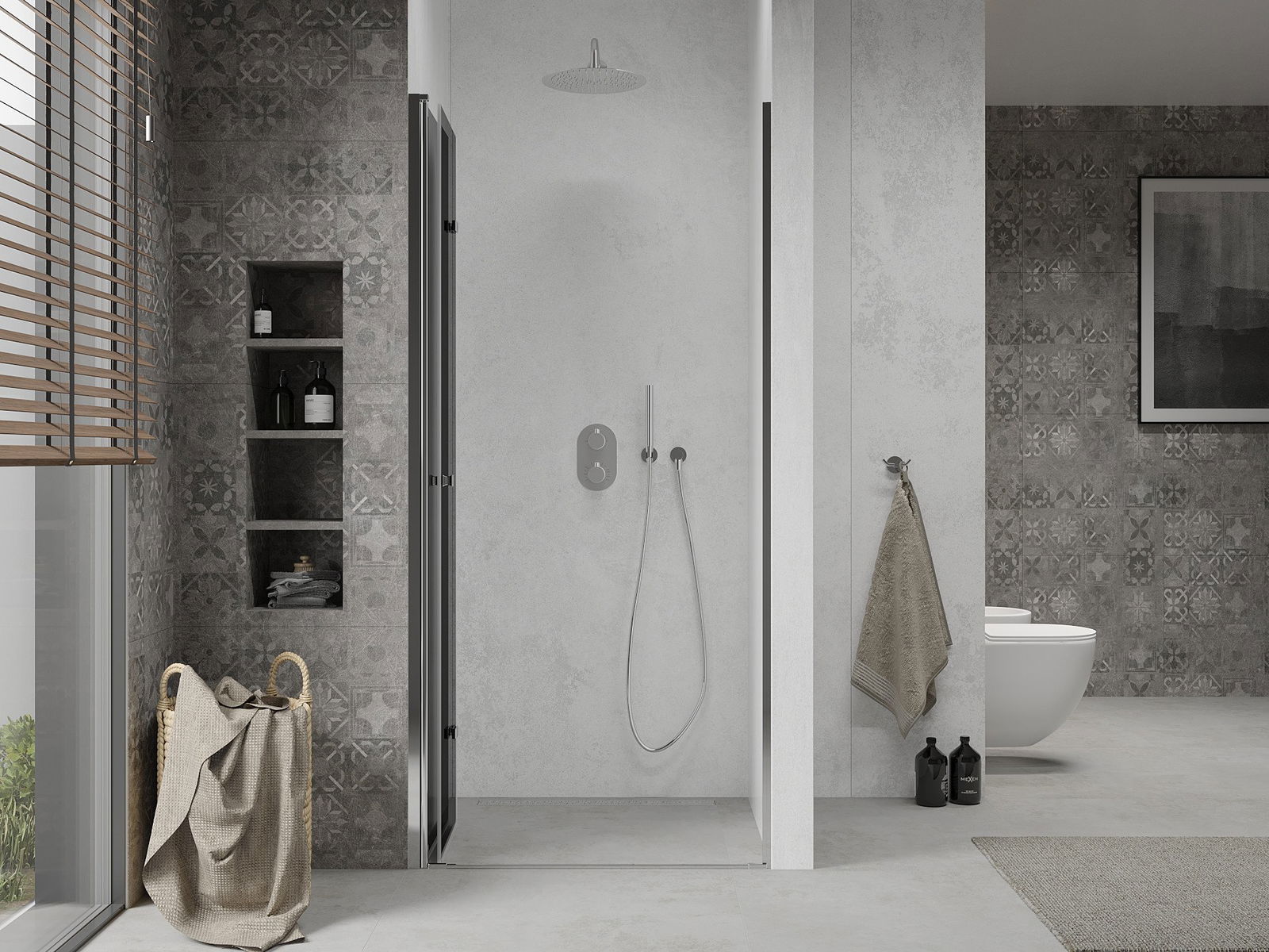 Schopnosť zložiť dvere vonku aj vo vnútri vám umožňuje získať viac priestoru, keď nepoužívate sprchu. Je to ideálne riešenie pre menšie kúpeľne, maximálne pomocou dostupného povrchu.