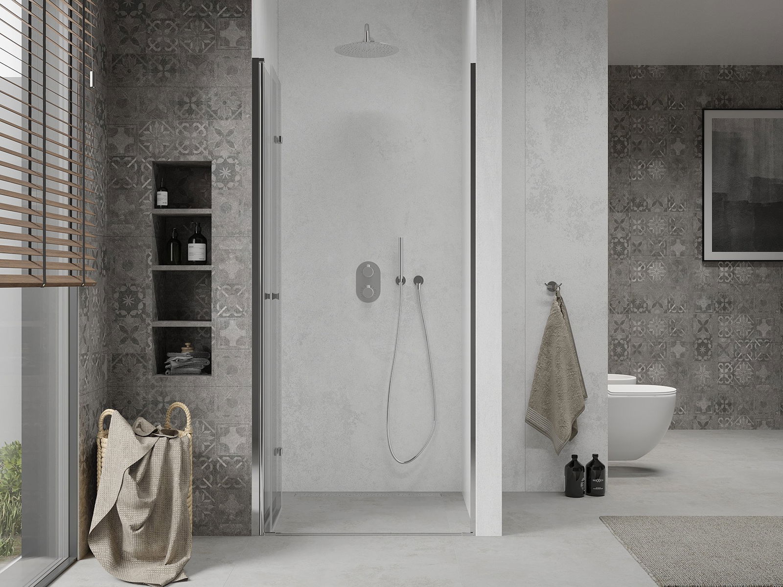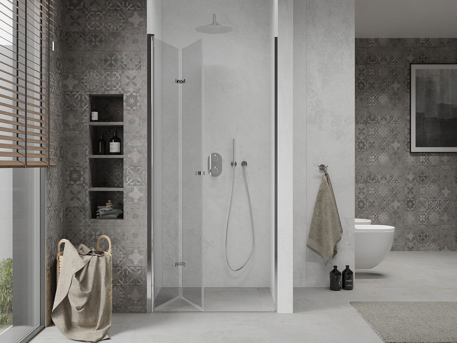 Schopnosť zložiť dvere vonku aj vo vnútri vám umožňuje získať viac priestoru, keď nepoužívate sprchu. Je to ideálne riešenie pre menšie kúpeľne, maximálne pomocou dostupného povrchu.