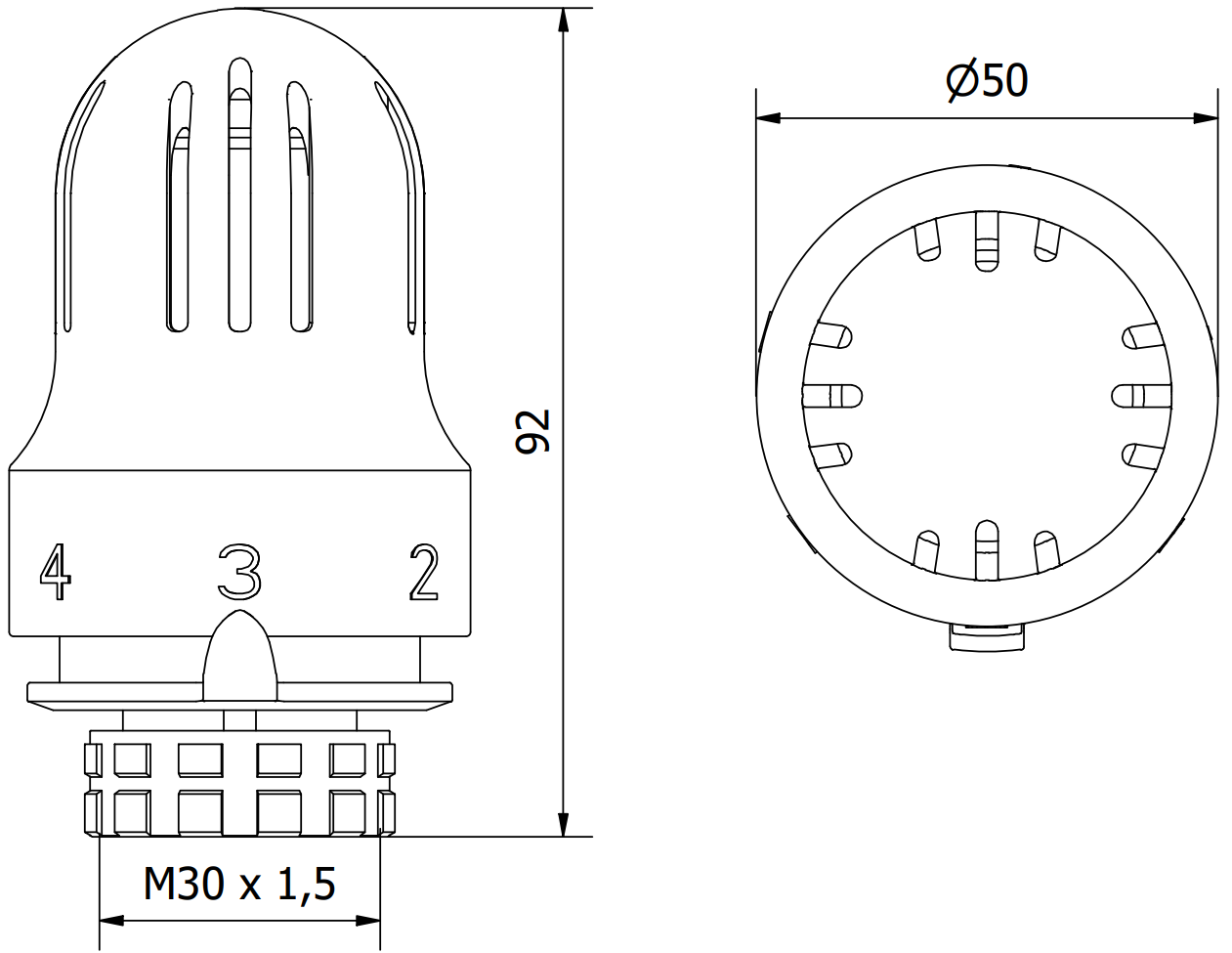 Je to štandardná veľkosť závitu používaná v mnohých termostatických hlaviciach, najmä v zariadeniach používaných v tepelných inštaláciách. Symbol M30 znamená, že vonkajší priemer závitu je 30 mm a 1,5 mm - krok závitu je 1,5 mm.