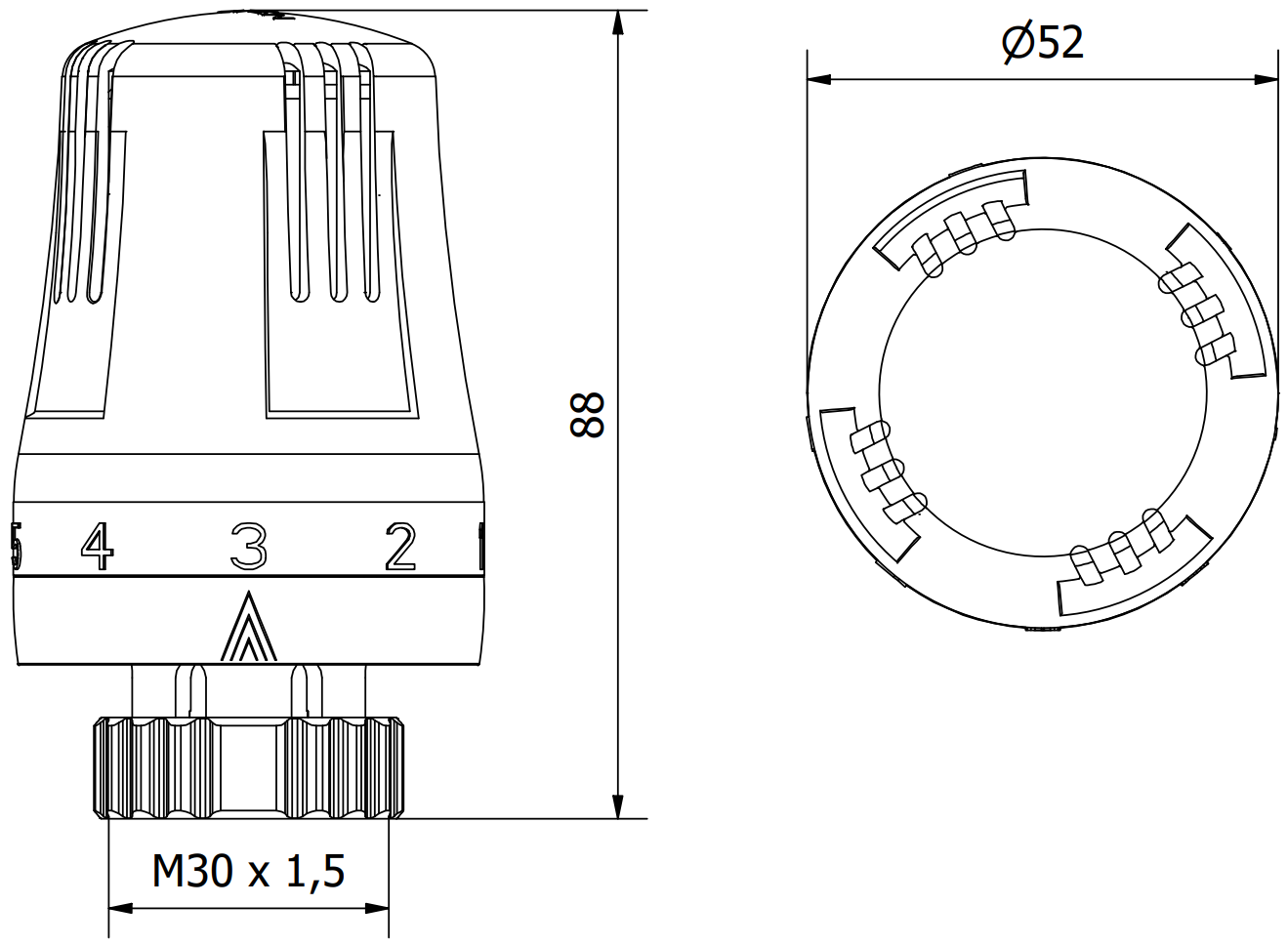 Je to štandardná veľkosť závitu používaná v mnohých termostatických hlaviciach, najmä v zariadeniach používaných v tepelných inštaláciách. Symbol M30 znamená, že vonkajší priemer závitu je 30 mm a 1,5 mm - krok závitu je 1,5 mm.