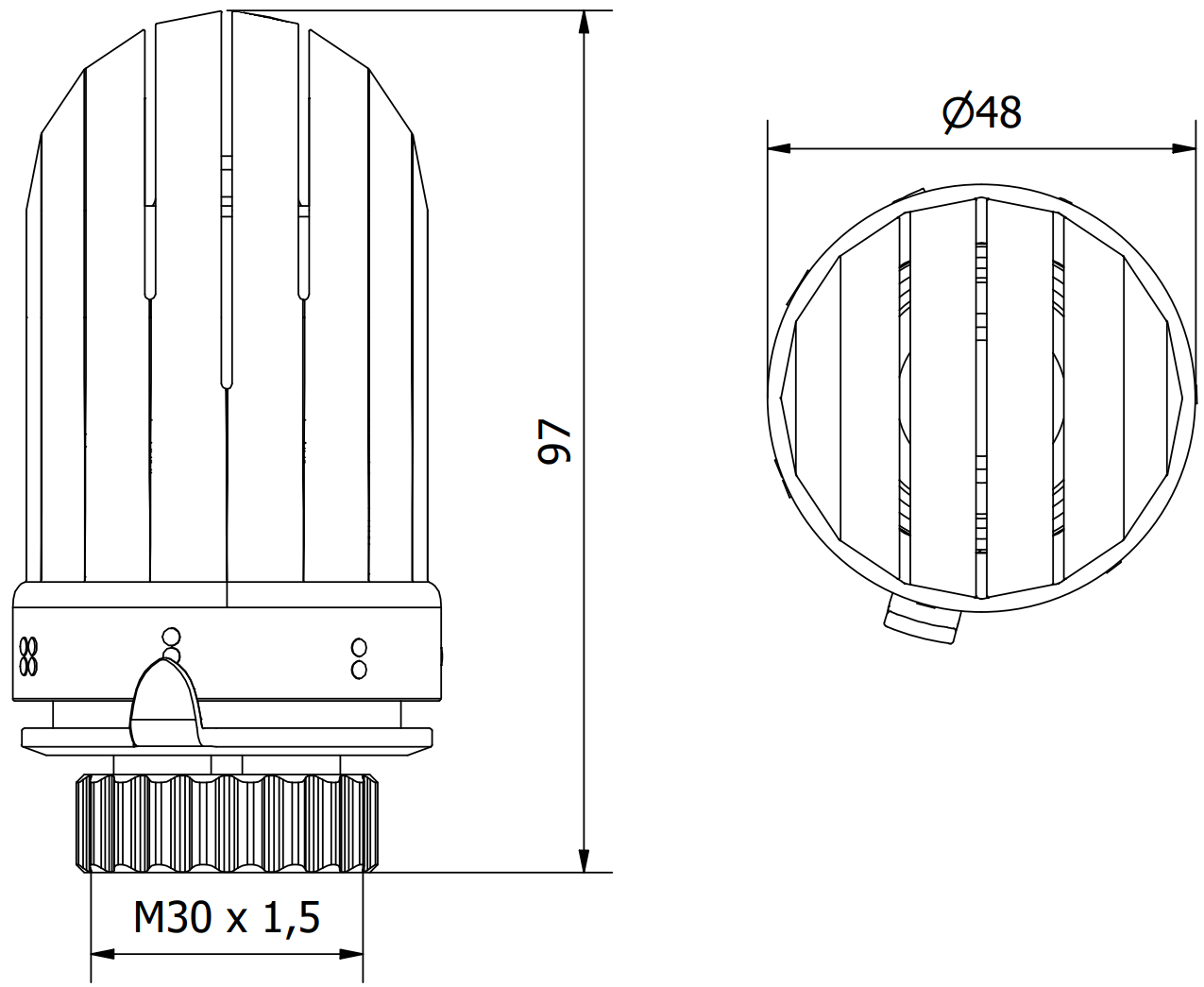 Je to štandardná veľkosť závitu používaná v mnohých termostatických hlaviciach, najmä v zariadeniach používaných v tepelných inštaláciách. Symbol M30 znamená, že vonkajší priemer závitu je 30 mm a 1,5 mm - krok závitu je 1,5 mm.