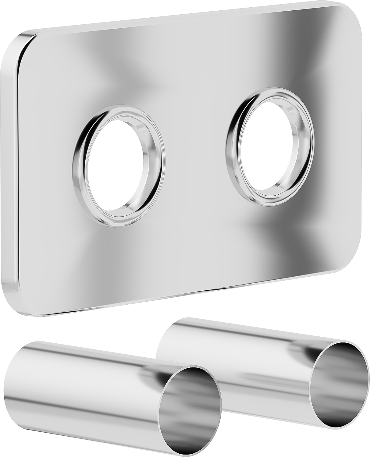 Krycia sada pozostáva z dvojitej rozety a dvoch puzdier určených na montáž termostatických sád a radiátorových ventilov