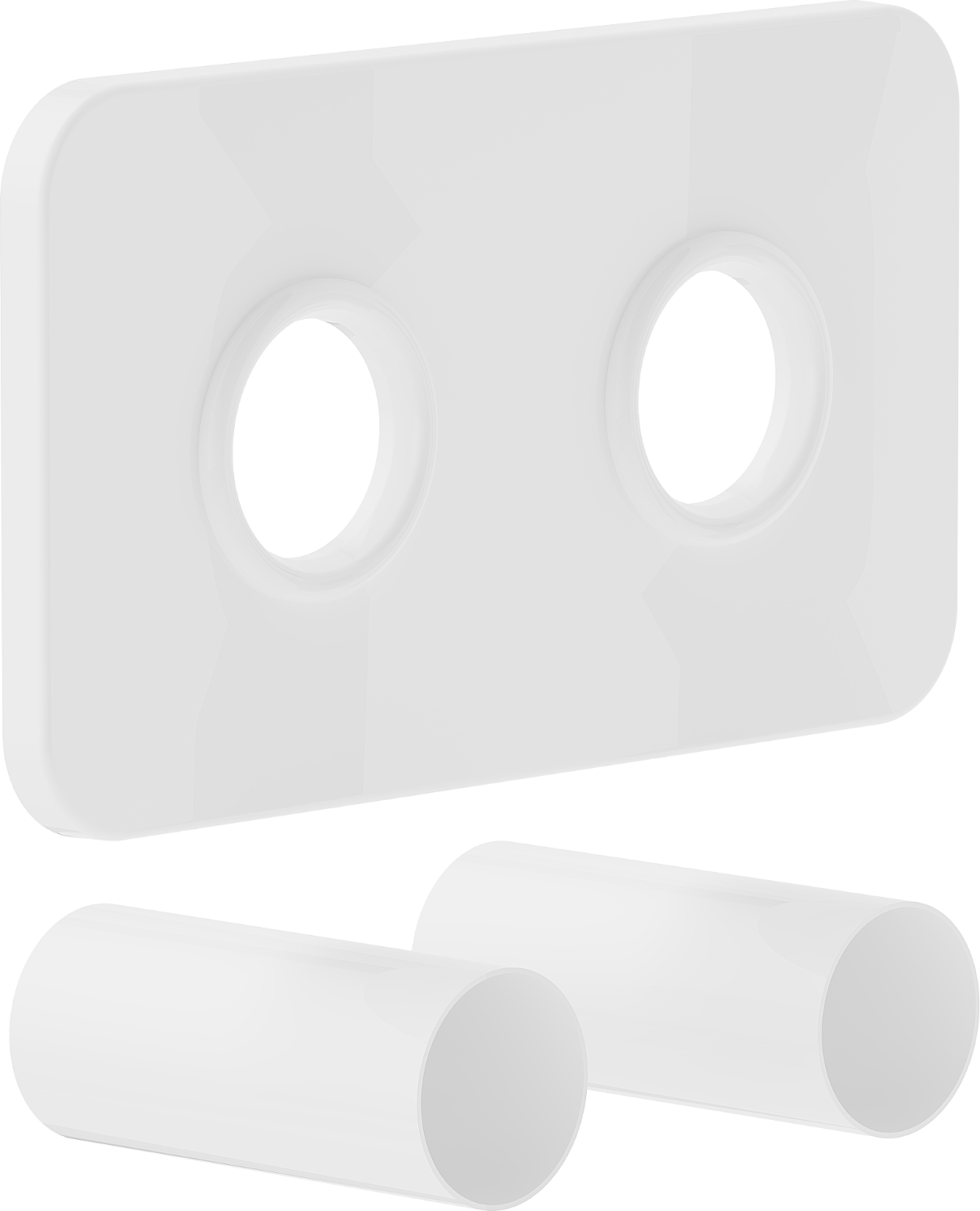 Maskovacia sada sa skladá z dvojitej rozety a dvoch puzdier určených na montáž termostatických sád a radiátorových ventilov
