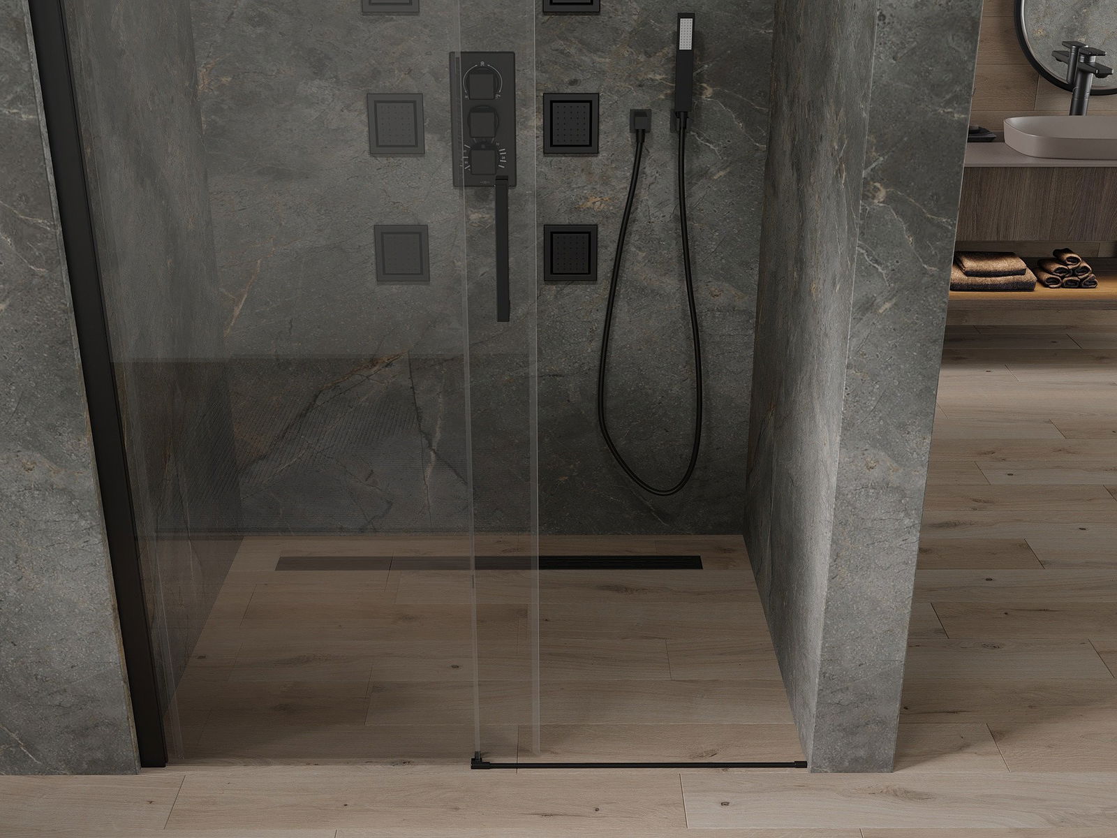 V závislosti od vašich potrieb je možné produkt namontovať na sprchovací podnos aj priamo na podlahe. Univerzálna montážna metóda vám umožňuje prispôsobiť produkt rôznym typom kúpeľní a nakonfigurovať priestor.