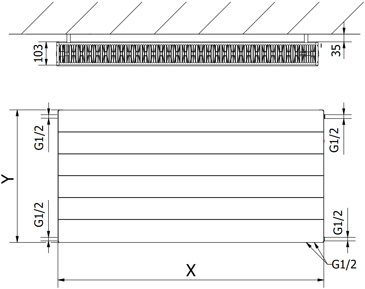 - 2xG ½″ zo spodnej časti na pravej alebo ľavej strane