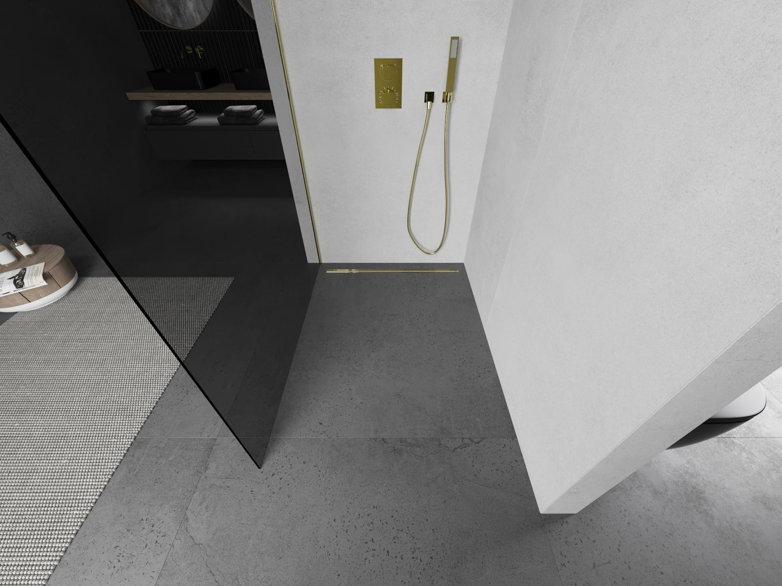 Mexen Kioto sprchová stena Walk-in 100 x 200 cm, grafitová 8 mm, zlatá - 800-100-101-50-40