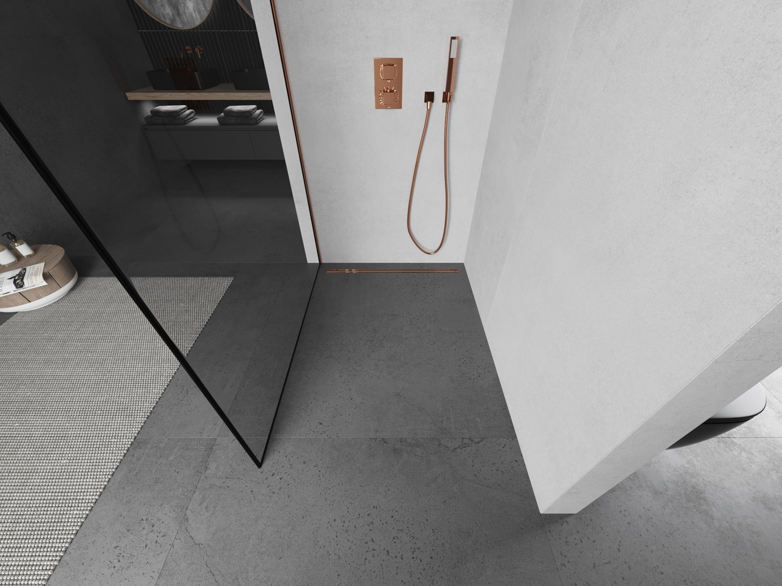 Mexen Kioto sprchová stena Walk-in 70 x 200 cm, čierny rám 8 mm, ružové zlato - 800-070-101-60-70