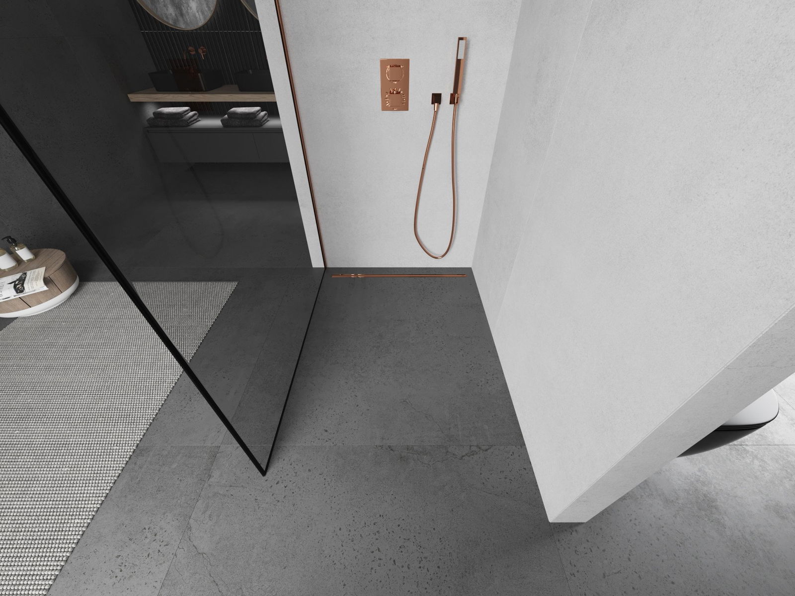 Mexen Kioto sprchová stena Walk-in 110 x 200 cm, čierny rám 8 mm, ružové zlato - 800-110-101-60-70