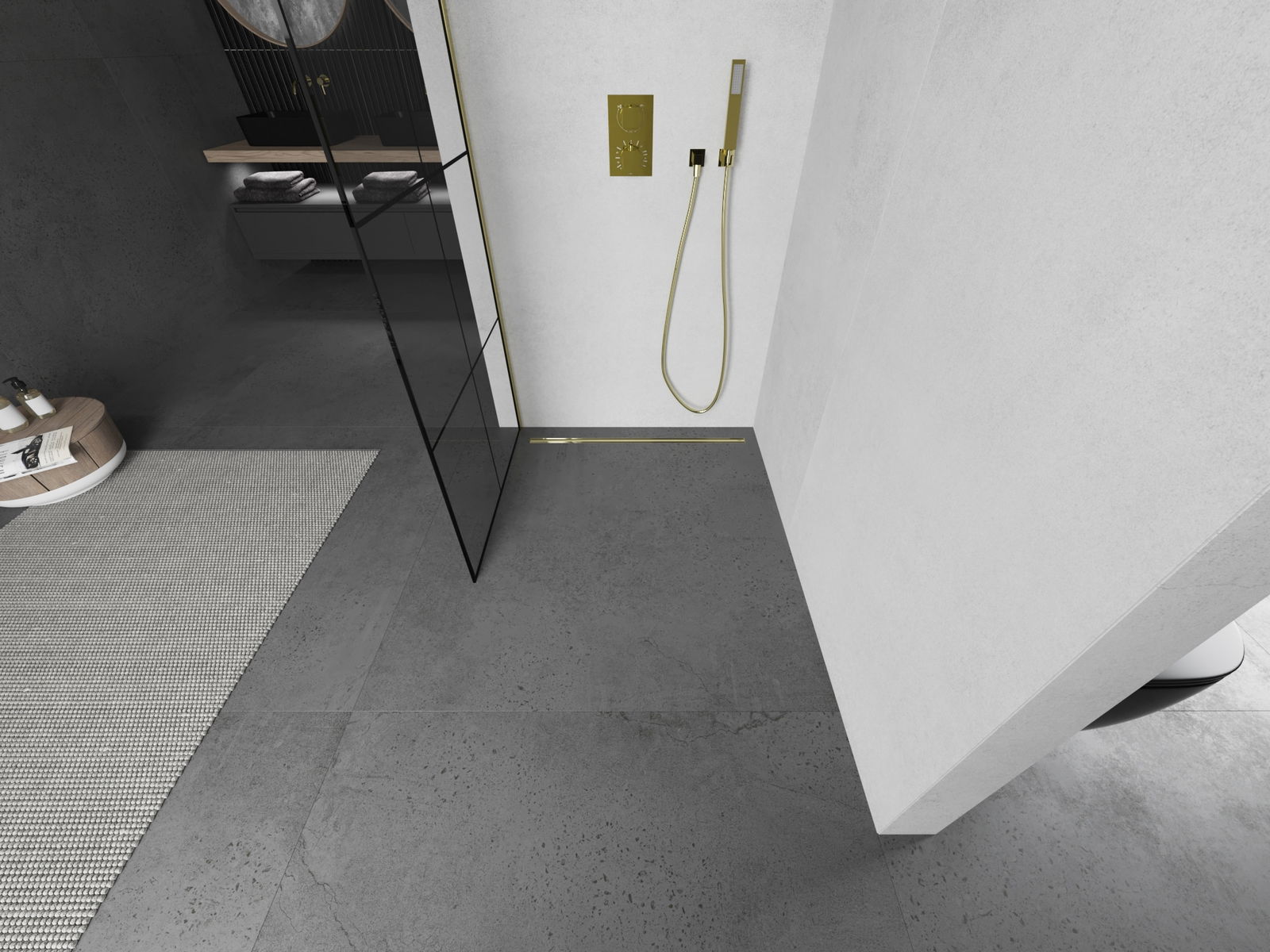 V závislosti od vašich potrieb je možné produkt namontovať na sprchovací podnos aj priamo na podlahe. Univerzálna montážna metóda vám umožňuje prispôsobiť produkt rôznym typom kúpeľní a nakonfigurovať priestor.