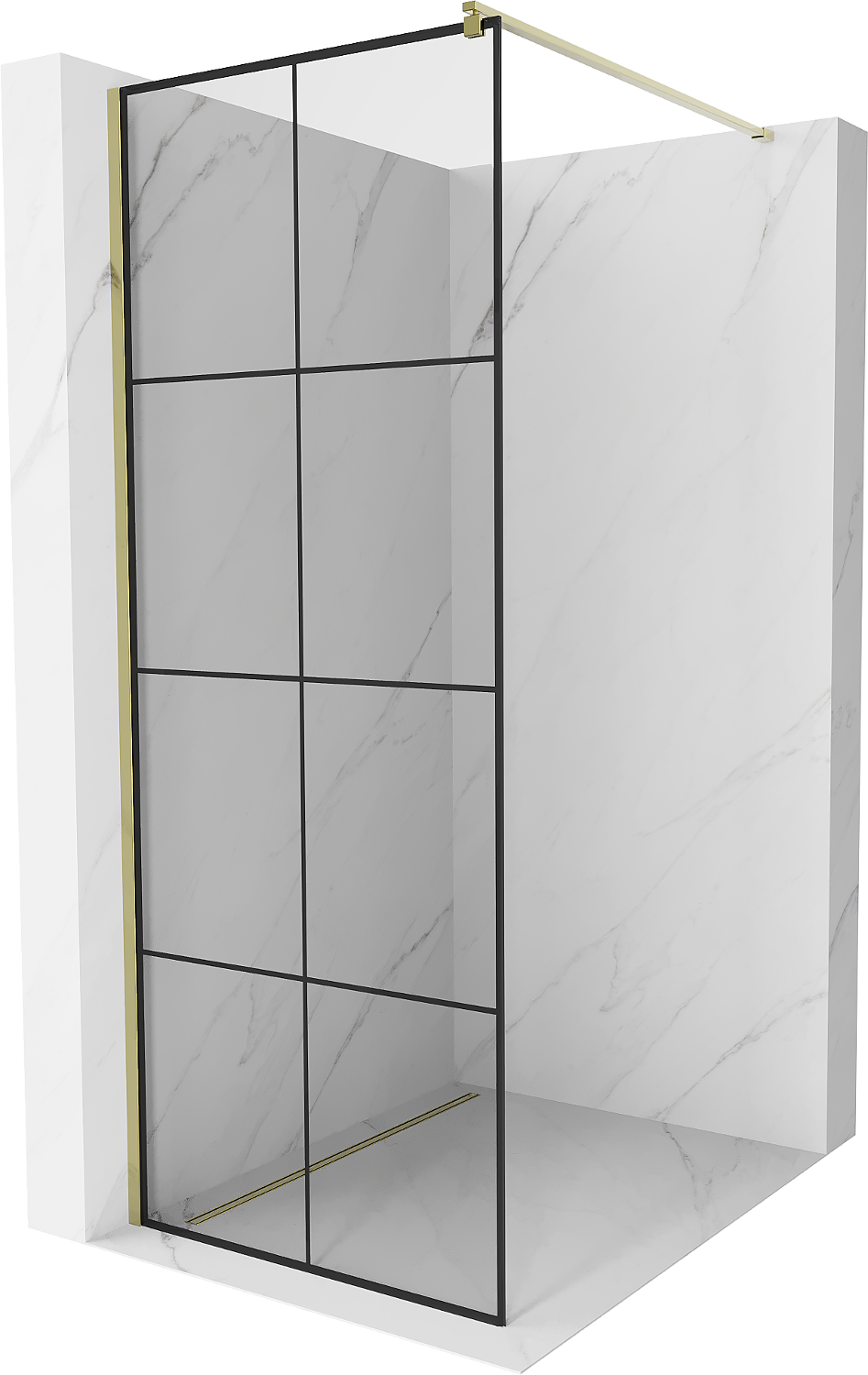 Mexen Kioto sprchová stena Walk-in 80 x 200 cm, čierna mriežka 8 mm, zlatá - 800-080-101-50-77