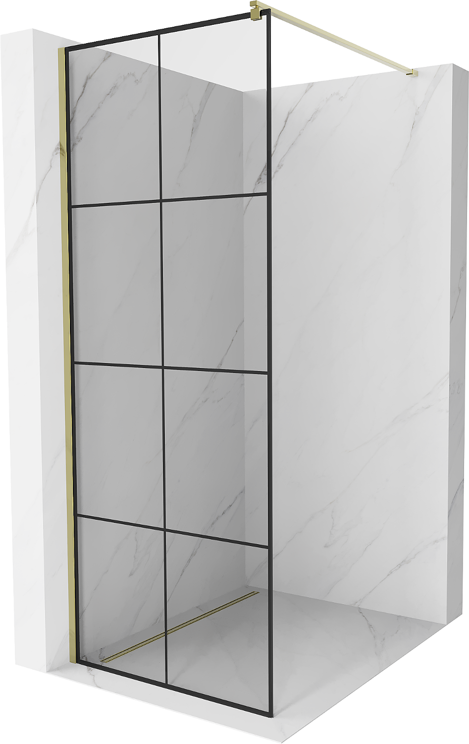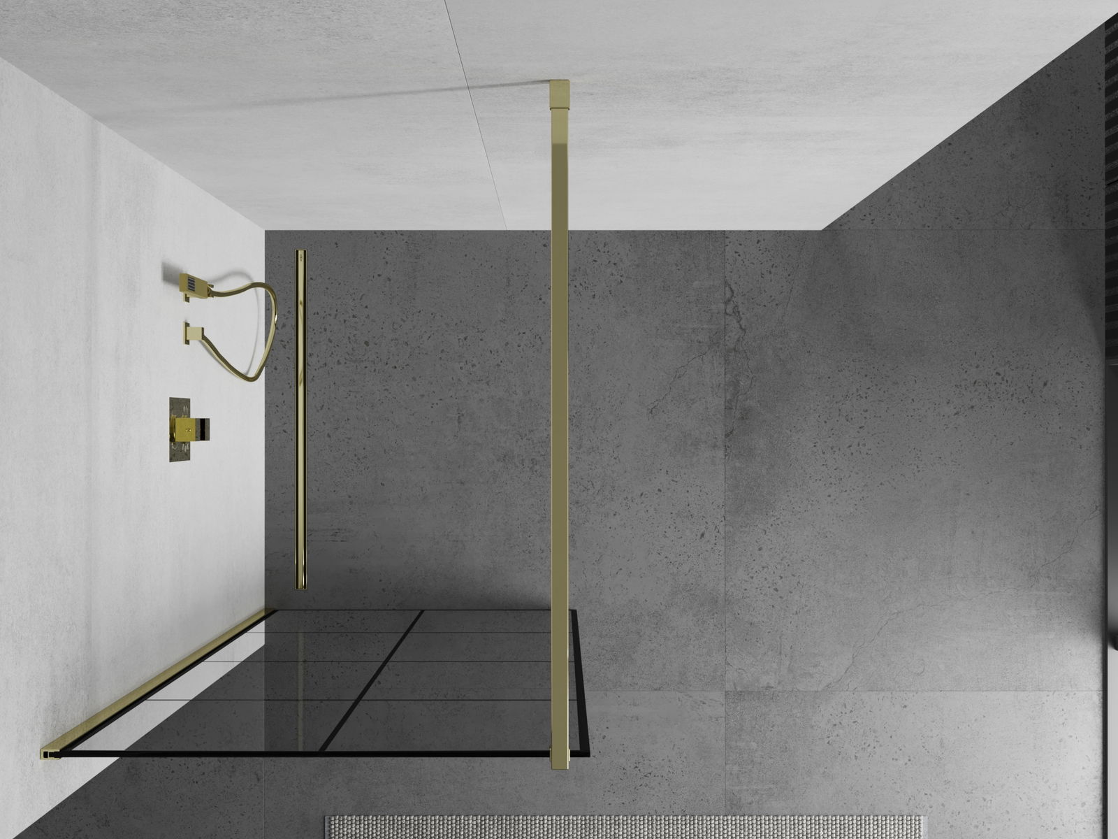 Mexen Kioto sprchová stena Walk-in 90 x 200 cm, čierna mriežka 8 mm, zlatá - 800-090-101-50-77