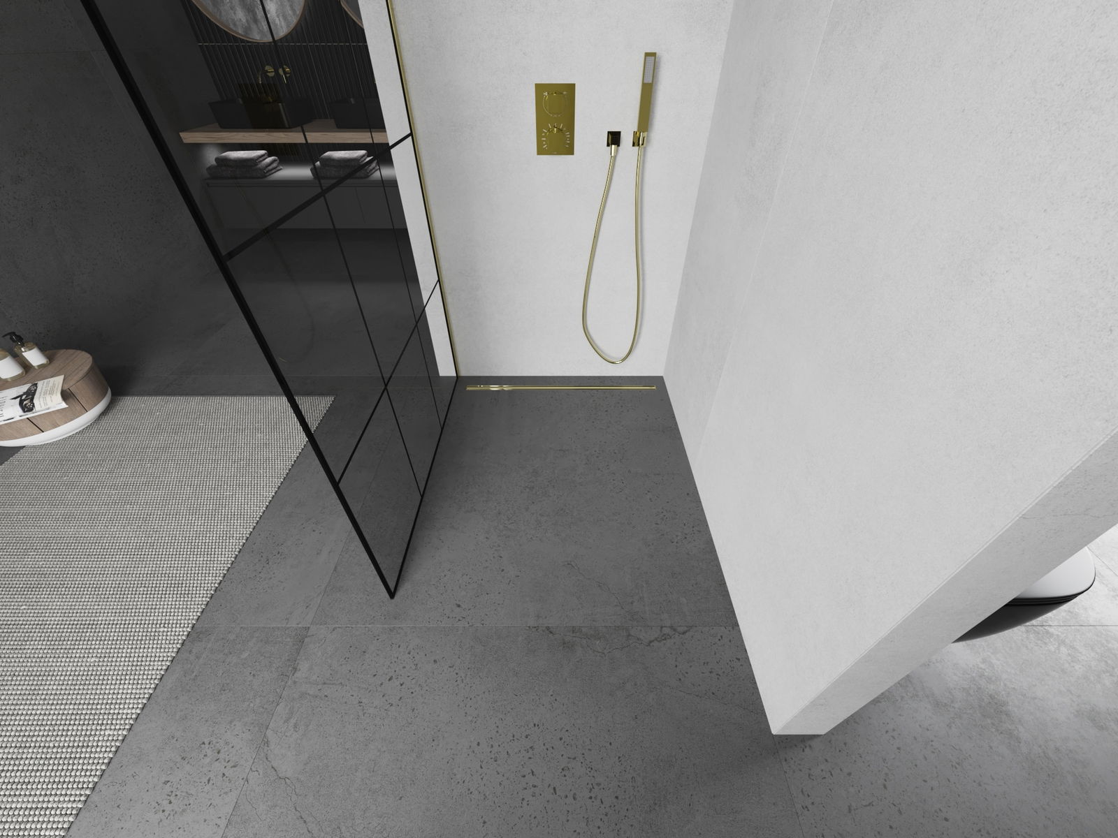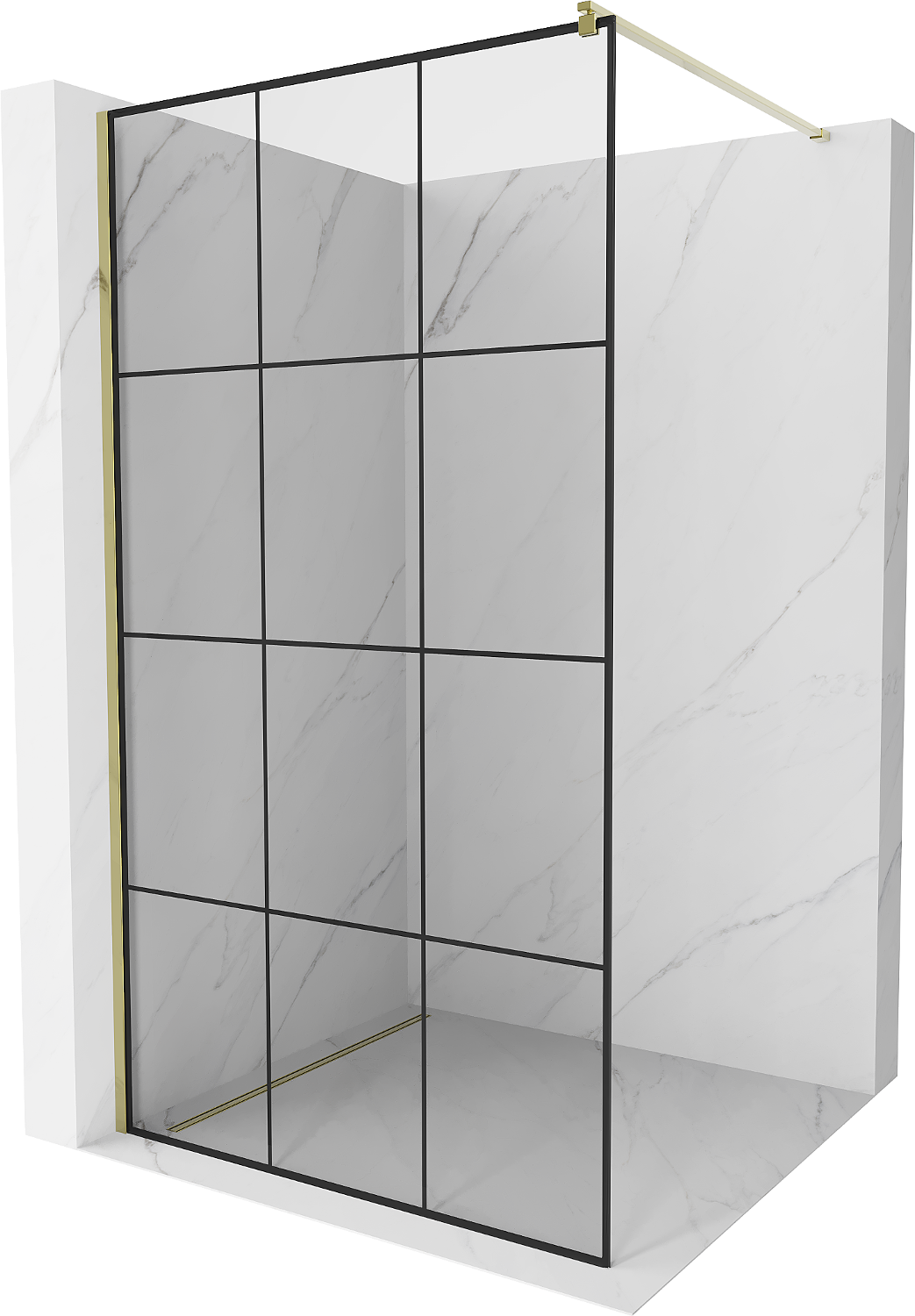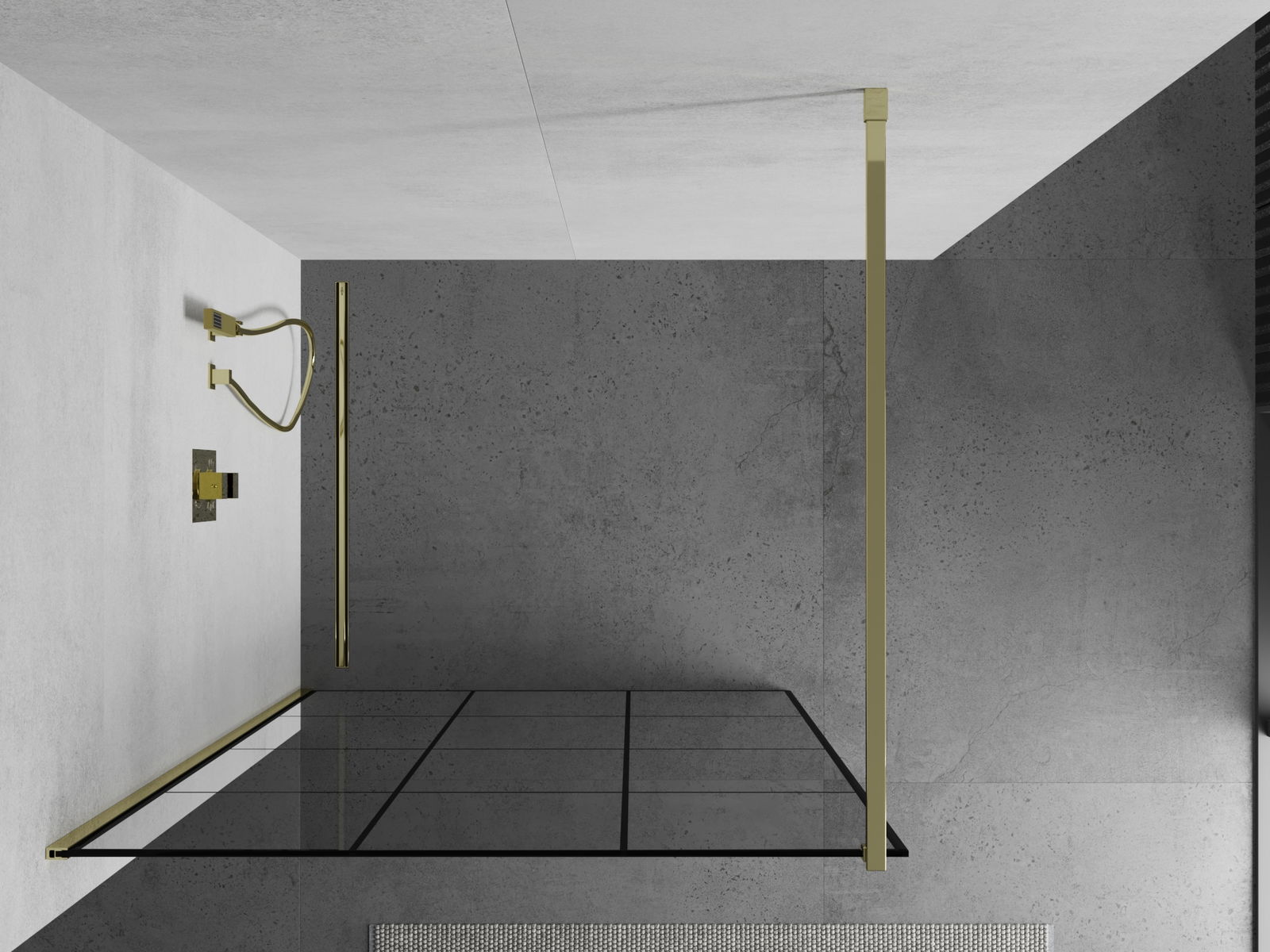 Mexen Kioto sprchová stena Walk-in 100 x 200 cm, čierna mriežka 8 mm, zlatá - 800-100-101-50-77