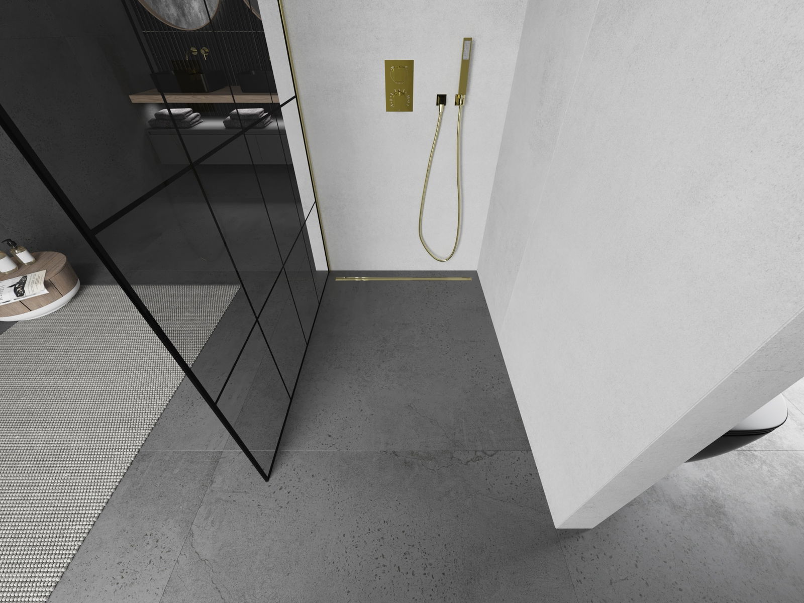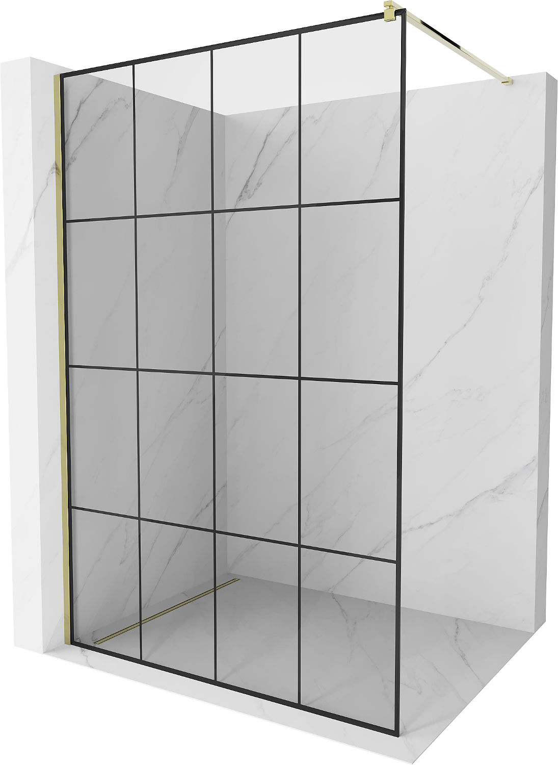 Mexen Kioto sprchová stena Walk-in 130 x 200 cm, čierna mriežka 8 mm, zlatá - 800-130-101-50-77