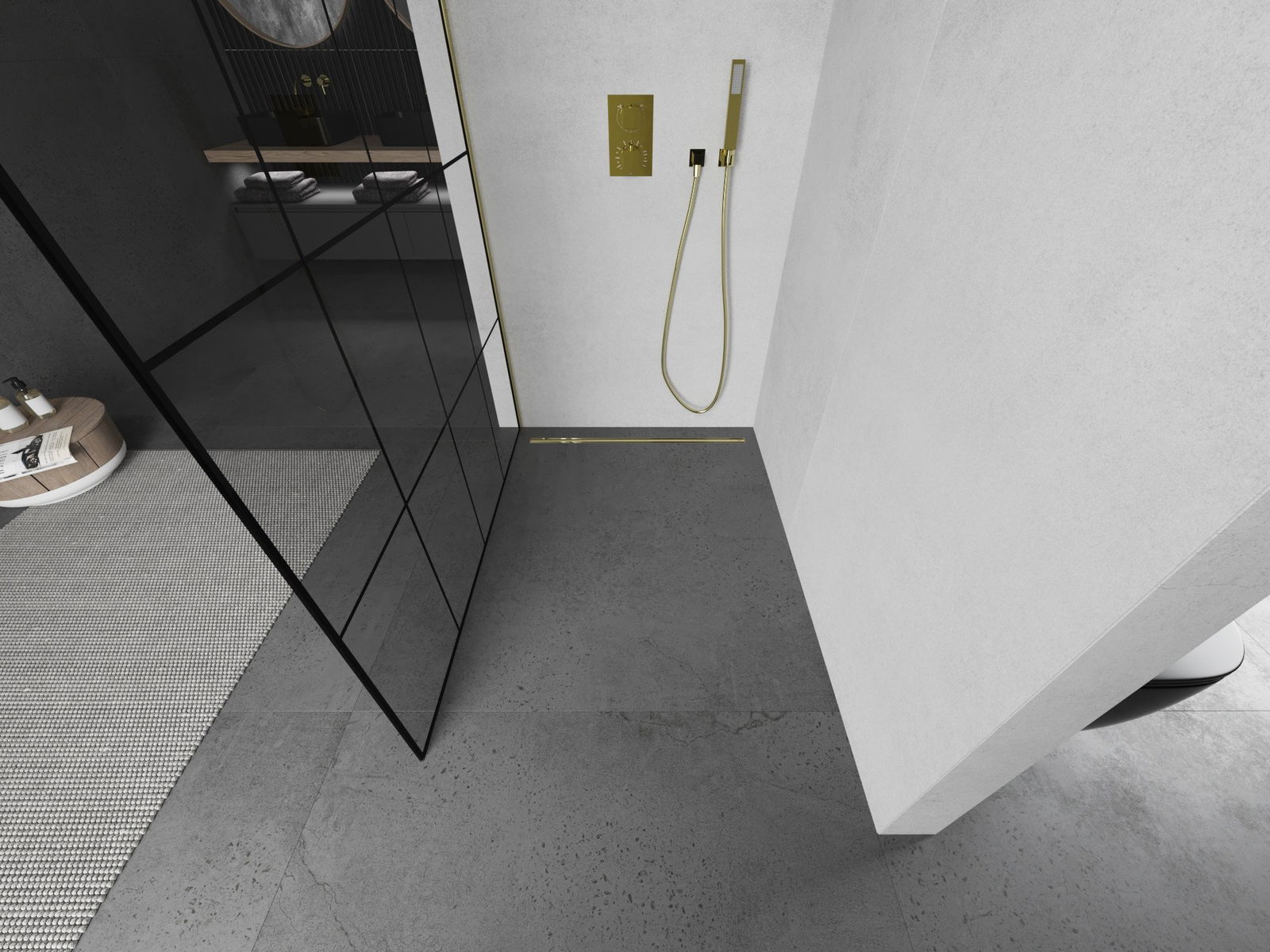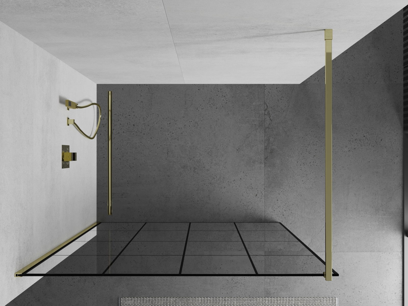 Mexen Kioto sprchová stena Walk-in 140 x 200 cm, čierna mriežka 8 mm, zlatá - 800-140-101-50-77