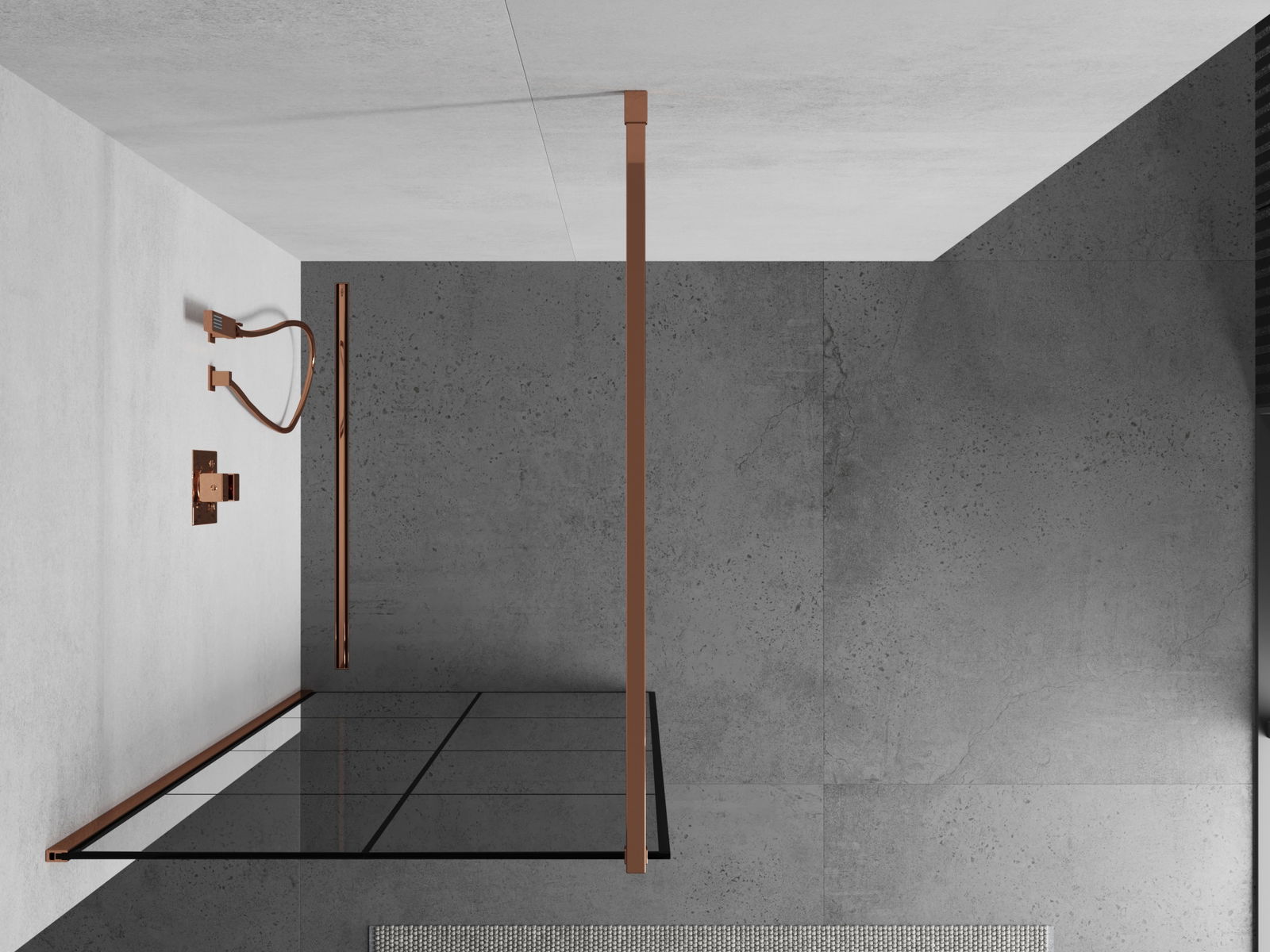 Mexen Kioto sprchová stena Walk-in 90 x 200 cm, čierna mriežka 8 mm, ružové zlato - 800-090-101-60-77