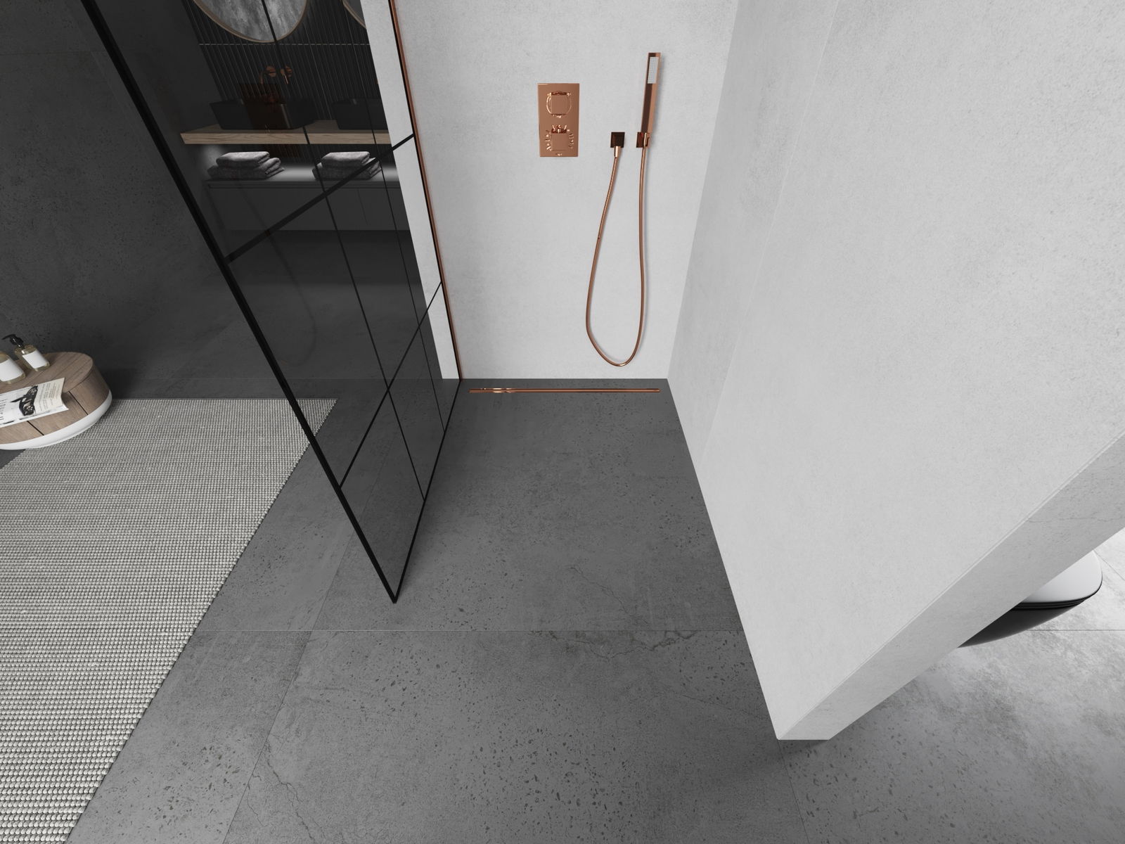 Mexen Kioto sprchová stena Walk-in 120 x 200 cm, čierna mriežka 8 mm, ružové zlato - 800-120-101-60-77